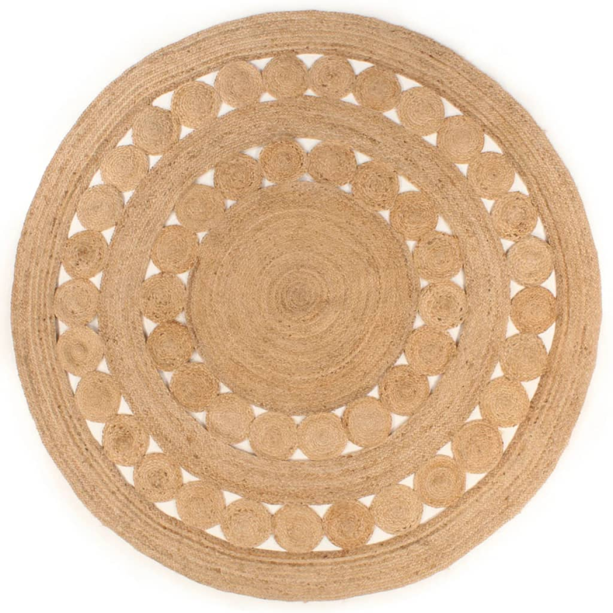 Give your interior a natural touch with this braided jute area rug! It is the perfect choice for decorating your room while protecting your floors. Durable material: The area rug is made of 100% jute. Jute is a very durable and naturally strong material and low maintenance.Handmade rug: The round carpet is handwoven by skilled artisans with exceptional craftsmanship and with its attractive texture and retro design, it will fit perfectly into your home decor.Versatile rug: The mat is versatile enough to be used alone or as a base for layering. The perfect rug to polish off your living room, bedroom or foyer. Note:Each rug is unique; variations in colour and design may occur due to the handmade nature of the product. The delivery is random, ensuring the exclusivity and individuality of your product.The rug is folded in a carton for easy transportation. Please allow the product some time to become perfectly straight and flat.
