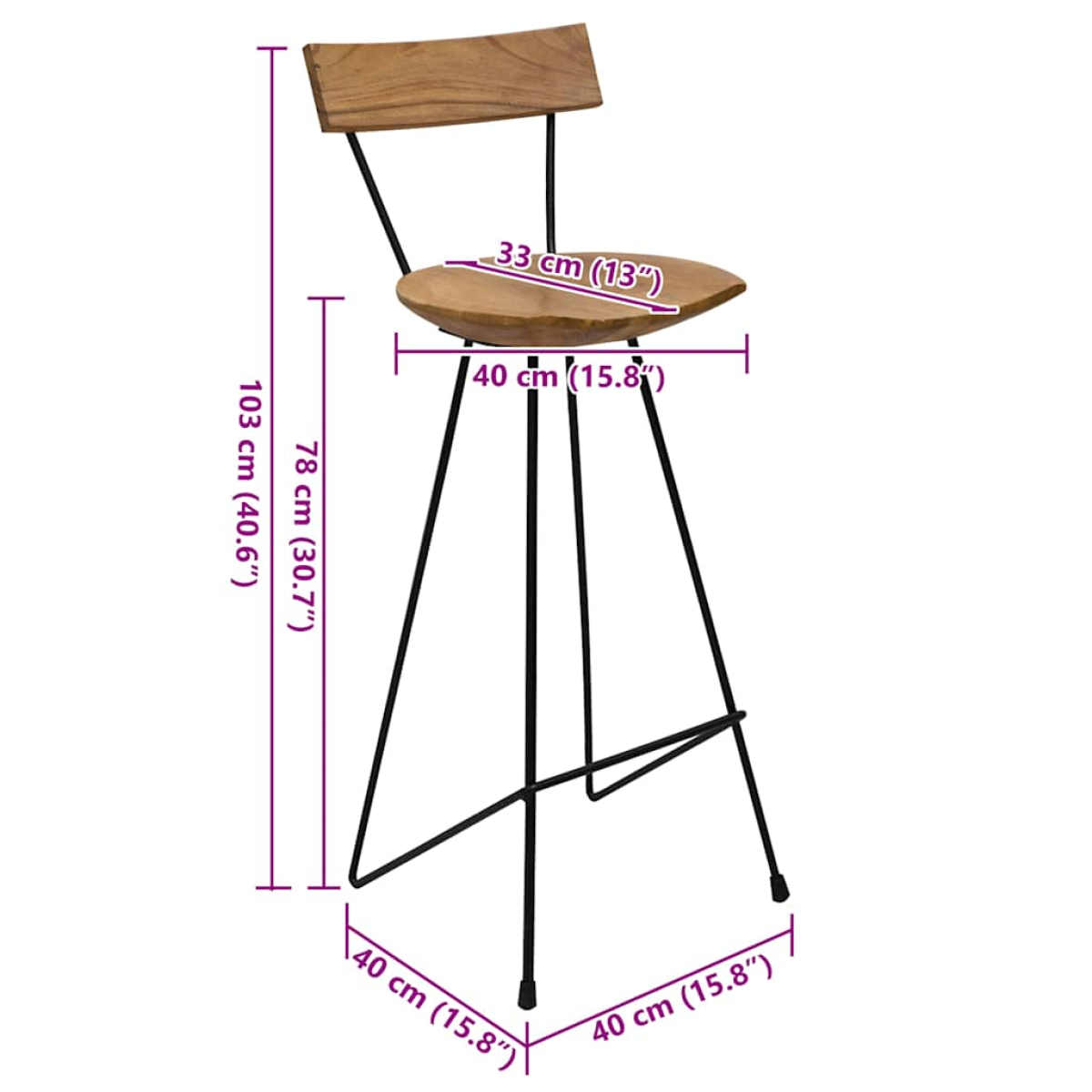 Instantly introduce a flair of rustic style to your interior decor with our stylish solid wooden bar stools! Constructed from extremely durable solid teak wood, our teak furniture has been seasoned, kiln dried and then fine sanded to give a very smooth appearance. Teak wood is known for its exceptional strength, making it the perfect choice for you to have a long lasting piece of furniture. Additionally, the legs are made of durable iron, which ensures their sturdiness and can be cleaned with ease. Delivery includes 2 bar stools. Important note: Variations in colour and grain may vary from piece to piece, making each of our bar stools unique. The delivery is random, ensuring the exclusivity and individuality of your product.