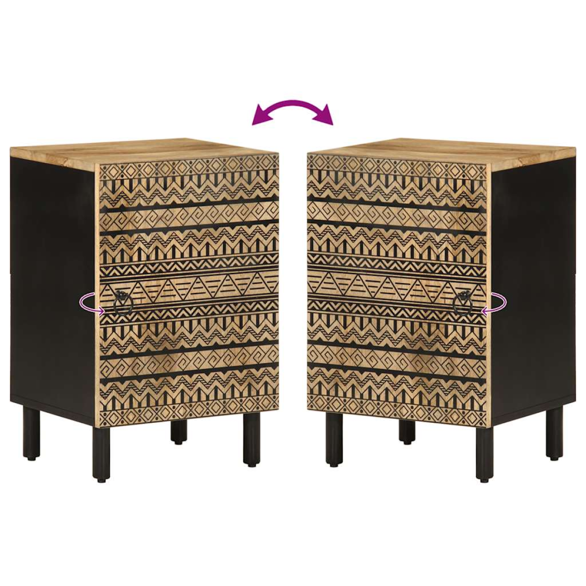 This bathroom cabinet is a great choice for your bathroom, making it tidy and organised! Solid mango wood: Solid mango wood is a strong, tropical hardwood that makes sturdy furniture. Its beautiful wood grains make every piece of furniture slightly different from the next. Made of solid mango wood, the bathroom storage cabinet is durable and stable.Ample storage space: This cabinet for bathroom offers ample storage space to keep your essentials well organised and within reach.Sturdy legs: The iron legs add the bathroom cupboard's sturdiness and stability.Retro style: This storage cabinet with hand-carved floral patterns brings the luxury of retro style to your interior, being the focal point of your room. Good to know:Each item is unique with variations in colours and grains. The delivery is random, ensuring the exclusivity and individuality of your product. Warning:To prevent it from tipping over, this product must be used with the provided wall attachment device.