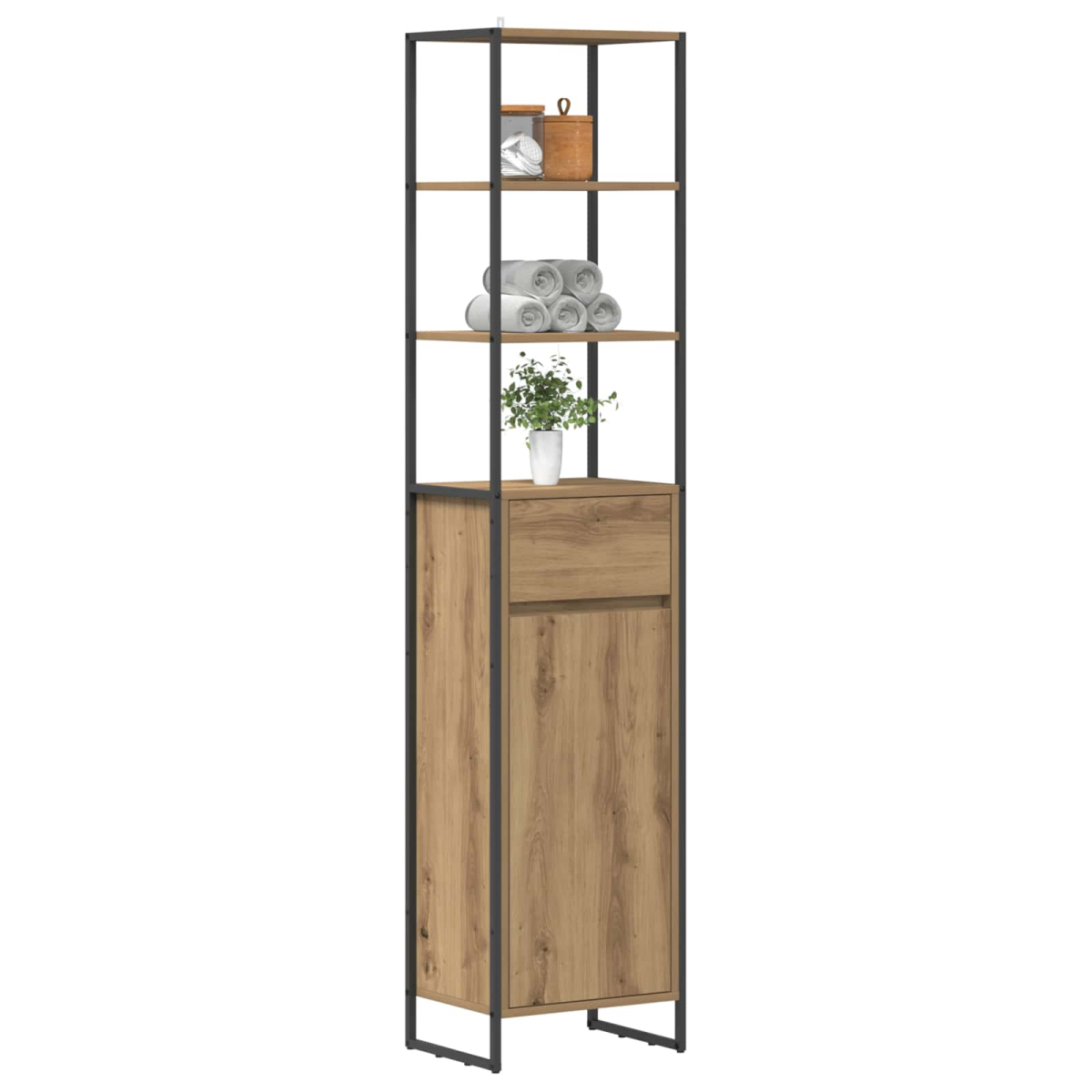 This Industrial Bathroom Cabinet provides a sophisticated and sleek storage option for any bathroom space, featuring a contemporary rectangular shape that embodies modern elegance. Crafted from engineered wood, its stylish aesthetic and reliable functionality make it ideal for a range of bathroom settings. It adds a touch of sophistication and utility, allowing users to neatly organize their bathroom essentials and maintain a tidy space. Premium Engineered Wood: The cabinet is made from high-quality engineered wood, chosen for its resilience and refined appearance. This material ensures that the cabinet remains a reliable storage solution while maintaining an appealing look that enhances any modern bathroom aesthetic. Durable Build: The long-lasting structure of the cabinet is designed to provide years of dependable service. The combination of engineered wood and steel legs offers a robust frame that stands up well to the demands of a busy bathroom environment, making it a practical addition to daily routines. Efficient Storage Options: With its ample interior, this cabinet provides plentiful space to organize bathroom essentials easily. Its cleverly designed shelving allows for neat separation of items, quickly making clarity and order achievable in any bathroom space. Easy Assembly Requirements: The cabinet requires assembly by two people using a screwdriver. This setup process, while straightforward, ensures a firm and sturdy build, ready to deliver service immediately upon finishing assembly. Deliver contains 1 x Bathroom Cabinet. Care Instructions: To keep this cabinet looking its best, wipe with a damp cloth to remove dust and dirt. Regular maintenance will ensure the cabinet retains its polished look arraying a touch of modernity.