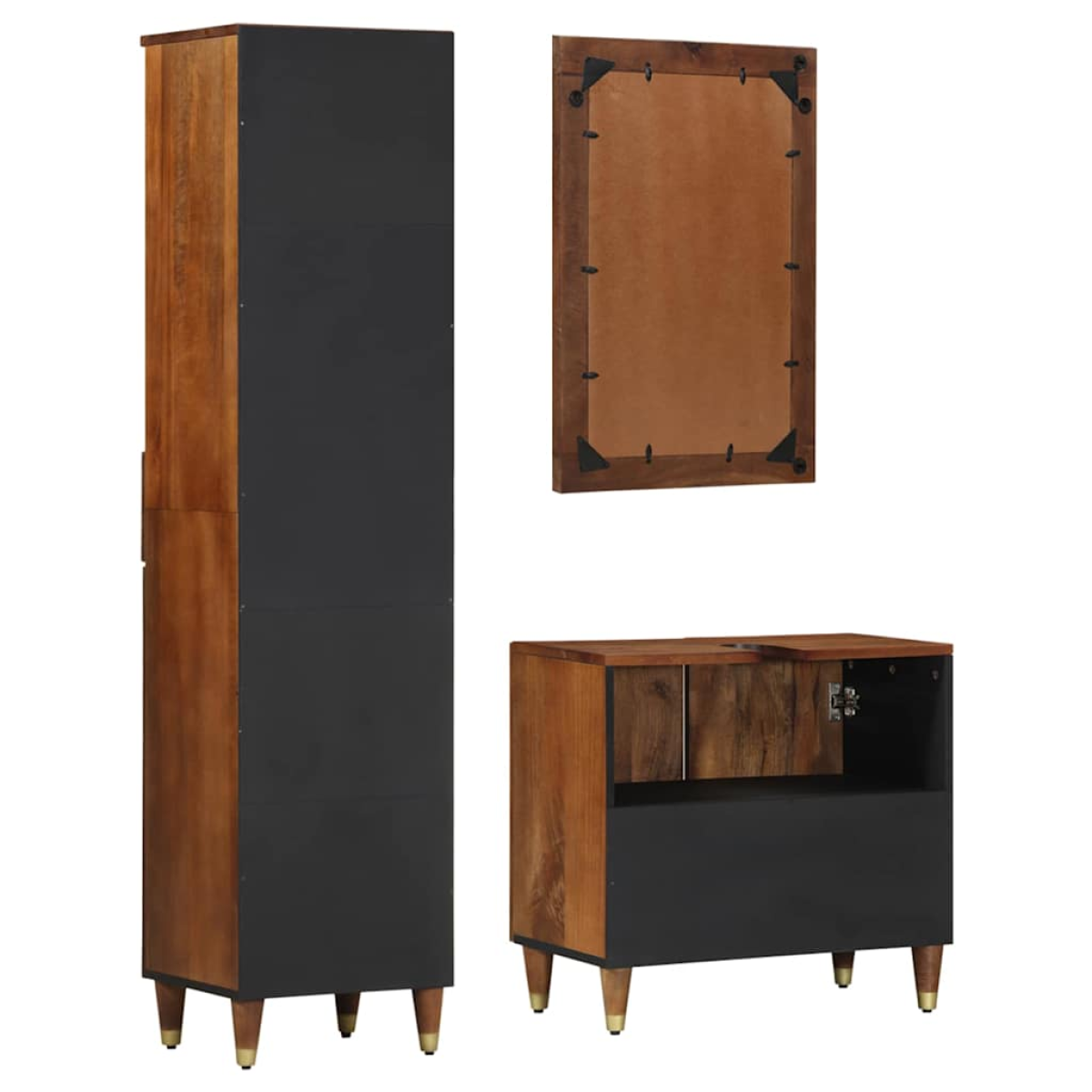 The Wooden Bathroom Furniture Set adds a touch of rustic charm to your bathroom. It’s designed to look great while being super functional. Made from solid mango wood, it gives off a warm, outdoor vibe, perfect for those looking to brighten up their space. The natural tones go well with any bathroom style, whether you're into traditional or modern looks. Plus, the mix of materials makes it stable and long-lasting. Solid Build: Made entirely from solid mango wood, this set is all about strength and durability. The lovely texture and tough nature of the wood mean it’ll hold up well over time and still look great. Comprehensive Storage: With loads of storage options, this set has drawers and compartments to easily keep your toiletries sorted. The flush doors and knob handles look great and work well. There’s plenty of room, making it ideal for busy family bathrooms. Efficient Design: The wall-mounted design saves floor space, making it perfect for smaller bathrooms. The sleek mirror gives off a nice reflection, adding a bright touch to your daily grooming. Decorative and Functional: This set has a rustic vibe that creates a comfy yet stylish space. It combines useful features with good looks, fitting in well with different bathroom styles. Simple Maintenance: Just a quick wipe with a dry cloth is all you need to keep it looking nice. It's easy to care for, helping the set look warm and inviting without any hassle.