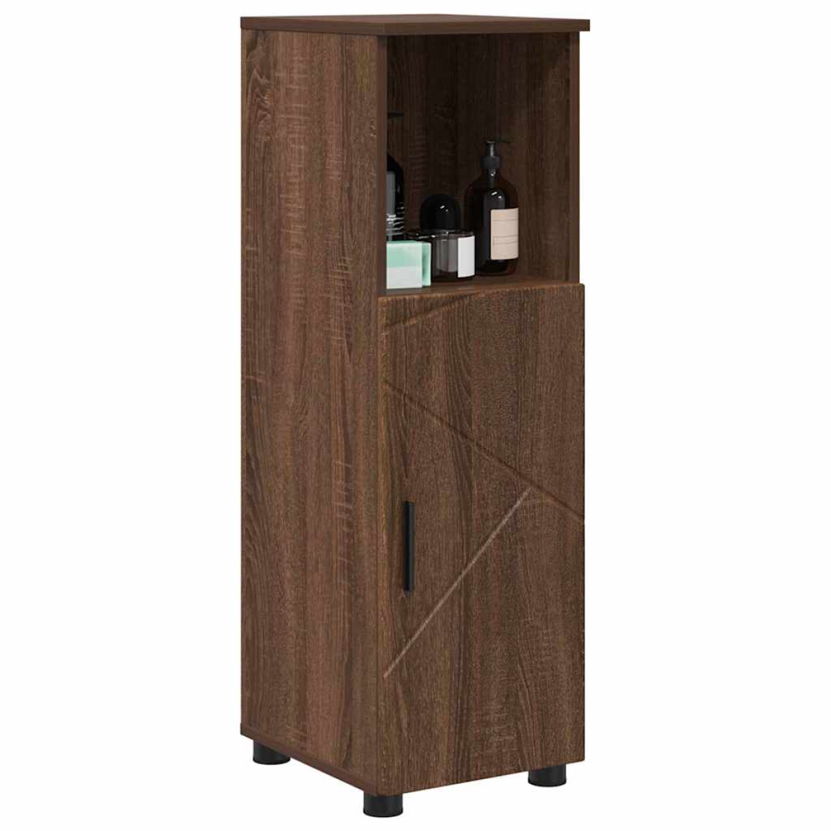 This freestanding bathroom cabinet serves as a versatile storage solution, combining modern design with functional utility. Crafted with engineered wood, it offers a sleek, rectangular shape that seamlessly complements any bathroom aesthetic. Designed for those looking to maximize storage without compromising on style, the cabinet provides a perfect blend of elegance and practicality. Durable Engineered Wood: The bathroom cabinet is constructed from reliable engineered wood, chosen for its resilience and moisture-resistant properties. This material ensures that the cabinet maintains its aesthetic appeal and functional integrity even in a humid bathroom environment. The engineered wood's smooth texture offers a pleasant tactile experience, complementing the modern style. Functional Hinged Doors: Equipped with hinged doors, the cabinet provides easy access to stored items, allowing users to organize essentials efficiently. The durable hinges open and close seamlessly, emphasizing reliability. Behind each presentable finished door, ample storage space awaits, making it ideal for any bathroom arrangement. Stylish Bar Handles: With sleek bar handles, the cabinet achieves a minimalist and sophisticated look. The solid, elongated design of the handles adds a visual statement, while their placement on the doors ensures comfortable usability. These handles, paired with the cabinet's overall modern aesthetic, enhance its elegance. Roomy Board Shelves: Inside, board shelves provide stable and versatile storage solutions for an array of bathroom essentials. Designed to support various items, from makeup to towels, they maximize usable space, enabling a tidy and organized layout. Their durability is crucial to maintaining efficiency over prolonged use. Effortless Cleaning: Maintenance is straightforward with its smooth surface, wiping clean with a damp cloth. Regular care keeps the cabinet in pristine condition, retaining its appealing look. This practical approach to upkeep ensures the unit remains functional and visually attractive over time.