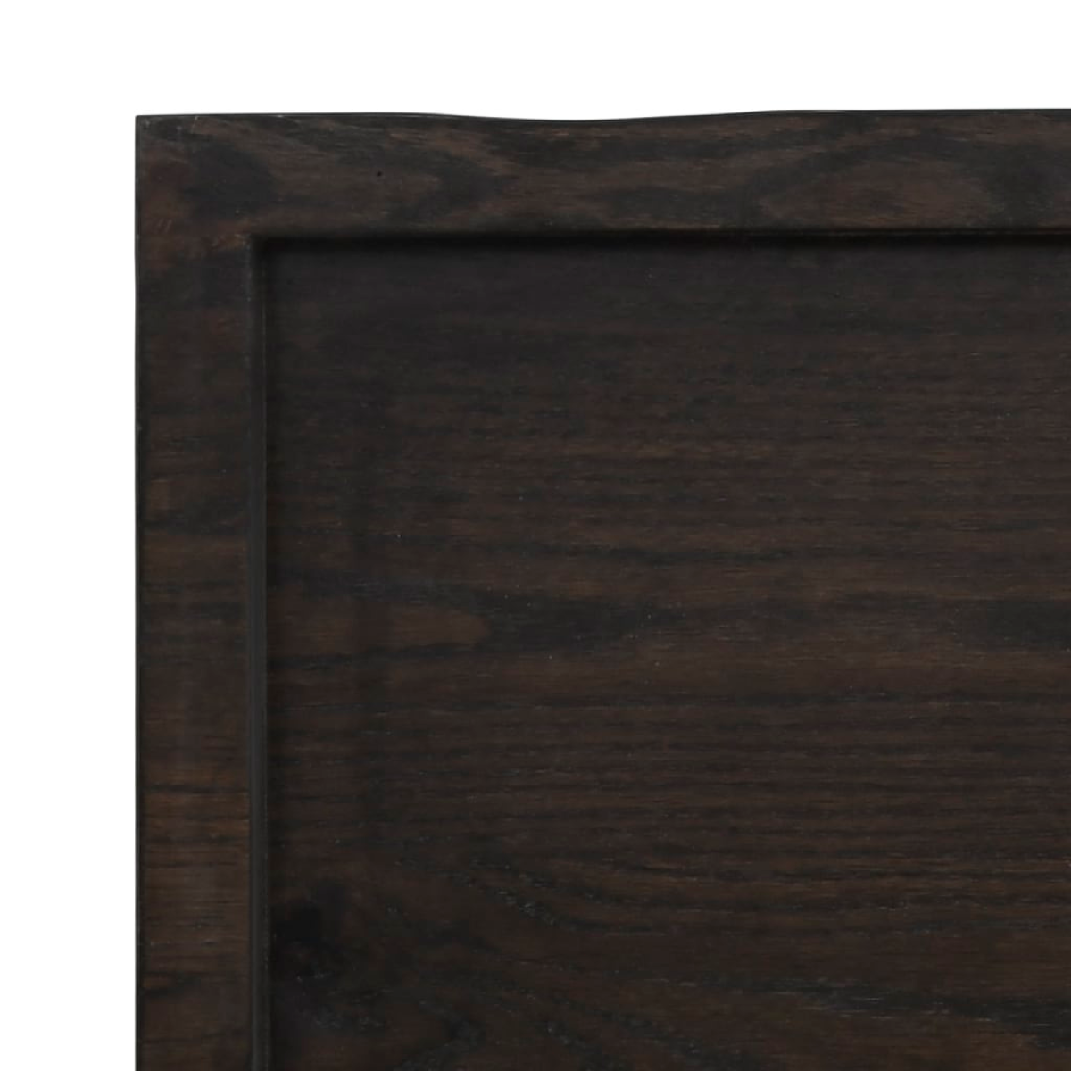 Are you planning to renovate your countertops at home? This wooden bathroom countertop is a perfect choice! Durable construction: This bathroom worktop is made of solid oak wood, which is a beautiful natural material. Oak wood has a medium brown colour and a dense grain, contributing to its unique look.Versatile applications: Besides a bathroom vanity top, this wooden countertop can be combined with different bases according to your needs. It can be used as a shelf, cabinet top, desk top, table top etc.Treated surface: The bathroom top has been treated with dark paint, so it is ready for use as an additional finish is not required.Handmade with live edge: This bathroom vanity countertop is handmade with a live edge. Due to that the knots, cracks, slightly curved shapes, and colour tones are part of the oak wood, every piece of oak countertop has its own unique character to display. The delivery is random. Good to know:As a natural product, wood may show knots and imperfections that we fill with black fillings to ensure a smooth appearance.