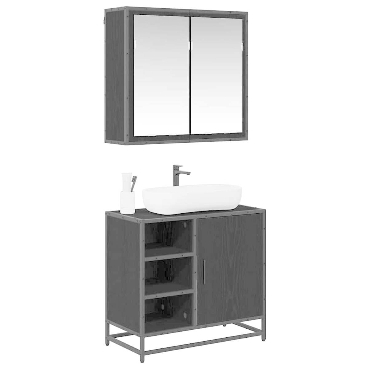 This modern Bathroom Furniture Set is all about clean lines and practical design, making it spot on for both small and spacious bathrooms. Its wall-mounted feature saves valuable floor space while giving a smart, streamlined vibe. The sleek rectangular shape fits right in with contemporary aesthetics, boosting the overall feel of your bathroom with its thoughtful construction. Material Composition: Made from sturdy engineered wood and metal, this set is built to last. It’s moisture-resistant, ensuring it performs well in bathrooms, and combines practicality with a nice modern touch. Functional Components: You get a mirror cabinet and a sink cabinet, both offering plenty of room for your bathroom bits and bobs. The mirror is great for personal grooming and brightens up the space, while the sink cabinet discreetly holds all your hygiene essentials. Integrated Features: The flush doors and bar-style handles keep the look minimalist and stylish. Plus, the square metal legs and wall-mount design make cleaning a breeze and enhance ease of use, ticking both style and function boxes. Space Optimization: With its compact size (65 x 33 x 60 cm), this set fits perfectly into various bathroom layouts, making it ideal for small flats or larger homes without clashing with your existing decor. Easy Upkeep: Maintenance is a doddle; just give it a wipe with a damp cloth, and it will look as good as new! Its tough surfaces can handle regular cleaning, so it stays looking sharp even in busy homes.