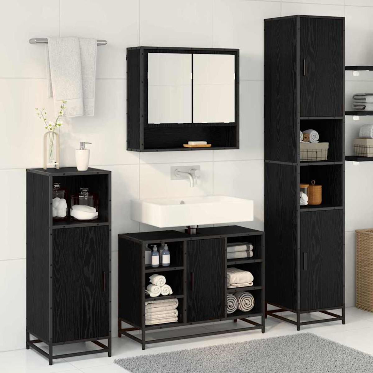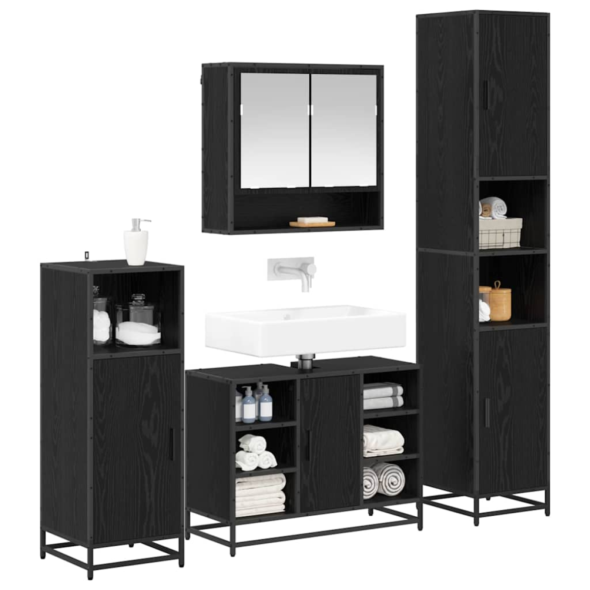 vidaXL Bathroom Furniture Set 4 pcs Black Oak Engineered Wood