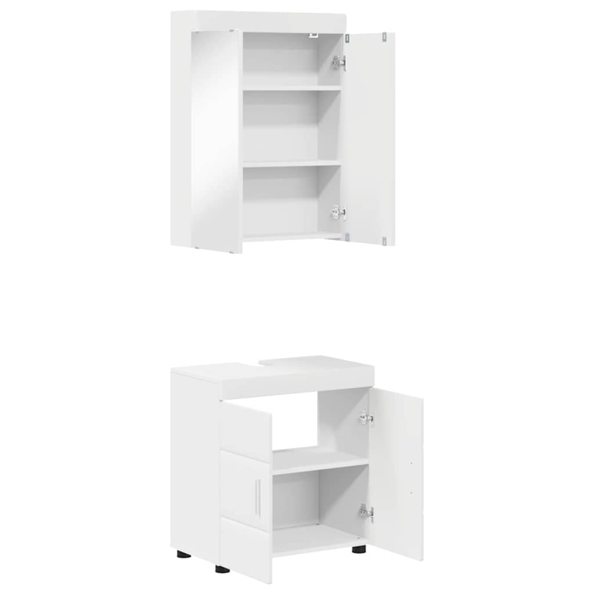 This modern bathroom cabinet set brings a sleek and clean-lined look to your bathroom. Designed for both function and style, the set uses engineered wood to provide a stable and durable storage solution. Ideal for various settings, this cabinet set complements contemporary bathroom designs while offering ample room for storing essentials. The smooth texture and matte finish add a touch of elegance, while the efficient design makes it suitable for any bathroom size and style. Engineered Wood Built from engineered wood, this cabinet set ensures longevity and robustness. The material's opaque and smooth texture gives the cabinets a refined appearance, while providing a sturdy structure. Its resilient nature is perfect for maintaining shape and form over time, offering a reliable storage solution. Ample Storage Capacity The set features spacious compartments ideal for neatly organizing bathroom essentials such as towels, toiletries, and cleaning supplies. This generous storage space enables quick and convenient access to items, ensuring a tidy and clutter-free environment. Matte Finish Sporting a sophisticated matte finish, the cabinetry delivers an elegant and contemporary look. The finish enhances the modern design and integrates seamlessly with a variety of bathroom décors, adding sophistication without overshadowing other design elements. Simple Care Instructions Maintaining the cabinet set is low effort, requiring only a damp cloth to keep its surfaces clean and attractive. This simple care routine ensures the cabinetry remains vibrant and intact for years, supporting a hassle-free upkeep process. Assembly Required The cabinet set requires assembly by two people, using a screwdriver. This straightforward process fosters a hands-on experience, allowing users to become acquainted with the construction of their new cabinet set.