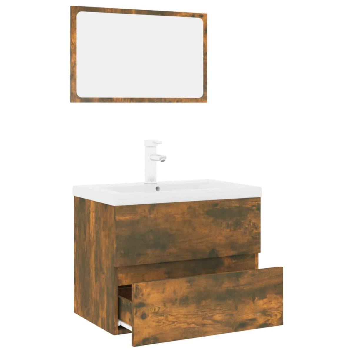 This stylish bathroom furniture set, featuring spacious storage space, is an excellent addition to your bathroom, giving it a tidy and striking appearance! Sturdy material: The under sink cabinet is made of engineered wood, that is of exceptional quality with smooth surface and also features strength, stability and resistance to moisture.Ample storage: The bathroom sink unit features a drawer, offering ample storage space to store items in your bathroom.Practical design: The top of this bathroom cabinet is ideal for placing the sink.Wall-mounted function: The bathroom cabinet and the make up mirror can be wall-mounted to add extra storage space. That way, you can maximise your floor space and keep the area clean.Overflow function: An overflow is also equipped to flow water out when it gets too full. Note:Screw(s) and plug(s) for inside the wall are not included. Seek and use screw(s) and plug(s) suitable for your walls. If you are uncertain, seek professional advice. Read and follow each step of the instruction carefully.The faucet and push drainer with overflow function are included.Each product comes with an assembly manual in the box for easy assembly.