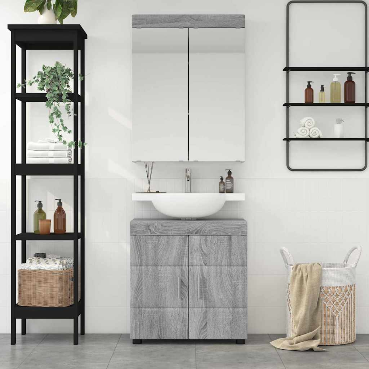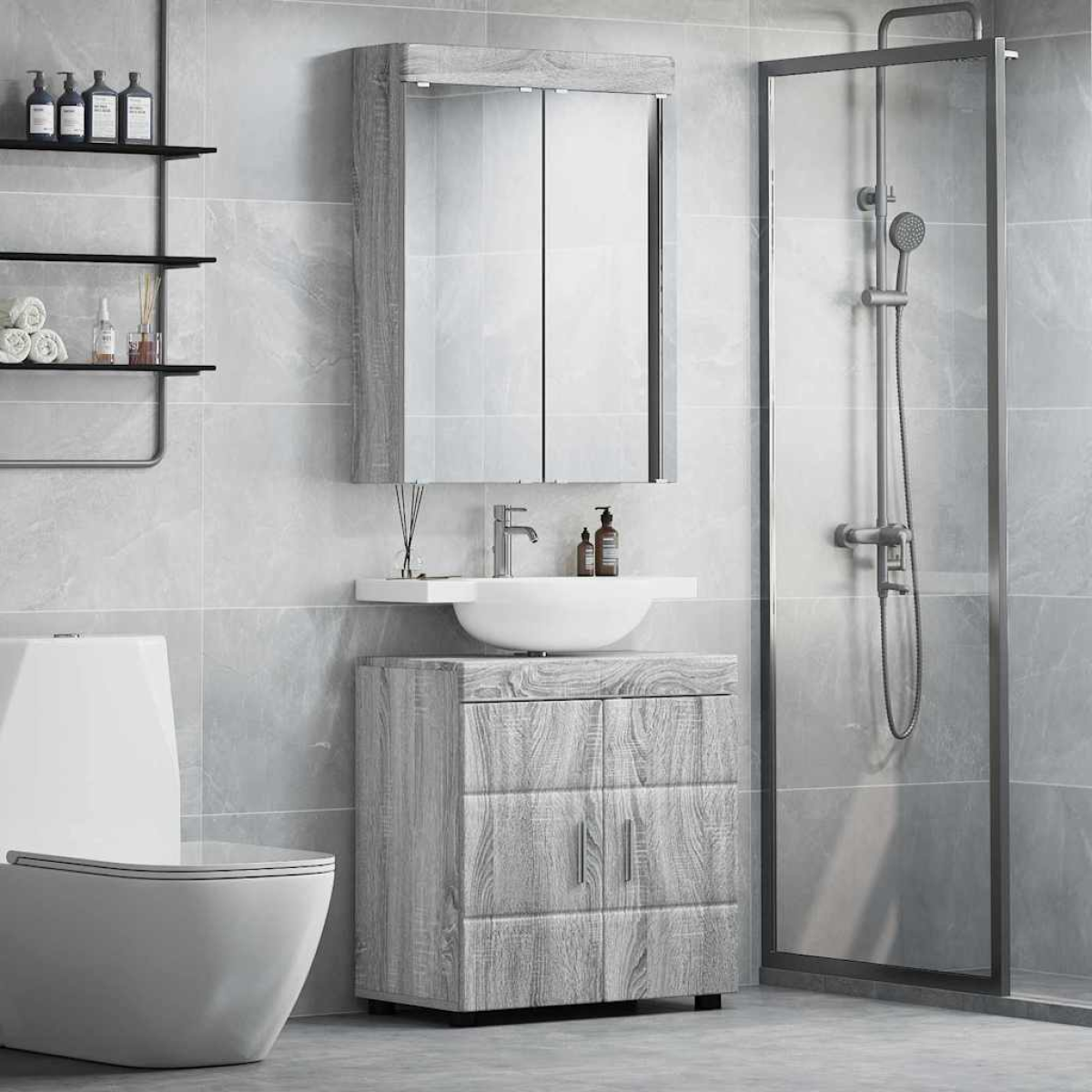 vidaXL Bathroom Furniture Set TULUM Grey Sonoma Engineered Wood