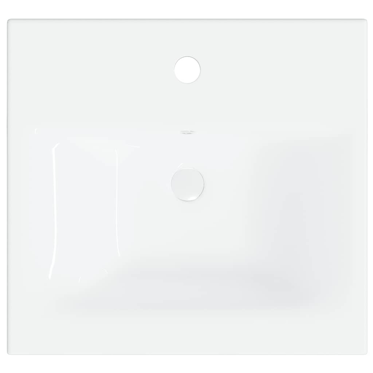 With this stylish bathroom furniture set, you can create additional storage space for your bathroom with a striking, tidy appearance. The clean lines and sleek design blend into your bathroom perfectly. The furniture set consists of a sink cabinet, a high cabinet, a built-in basin, and a mirror. The chic basin cabinet has 1 compartment, and the top of it is ideal for placing the sink. The high cabinet features a total of 5 compartments and 2 doors, offering ample space to store items in your bathroom. Made of ceramic, the basin can not only serve as a vessel for daily use but also as an adornment in your living space. Thanks to its trendsetting and contemporary design, this washbasin will definitely suit any decor. An overflow is equipped to flow water out when it gets too full. The mirror also adds an excellent appearance to your home decor. Additionally, this bathroom set is easy to clean with a damp cloth. Please note: The faucet and push drainer with overflow function are included in the delivery.