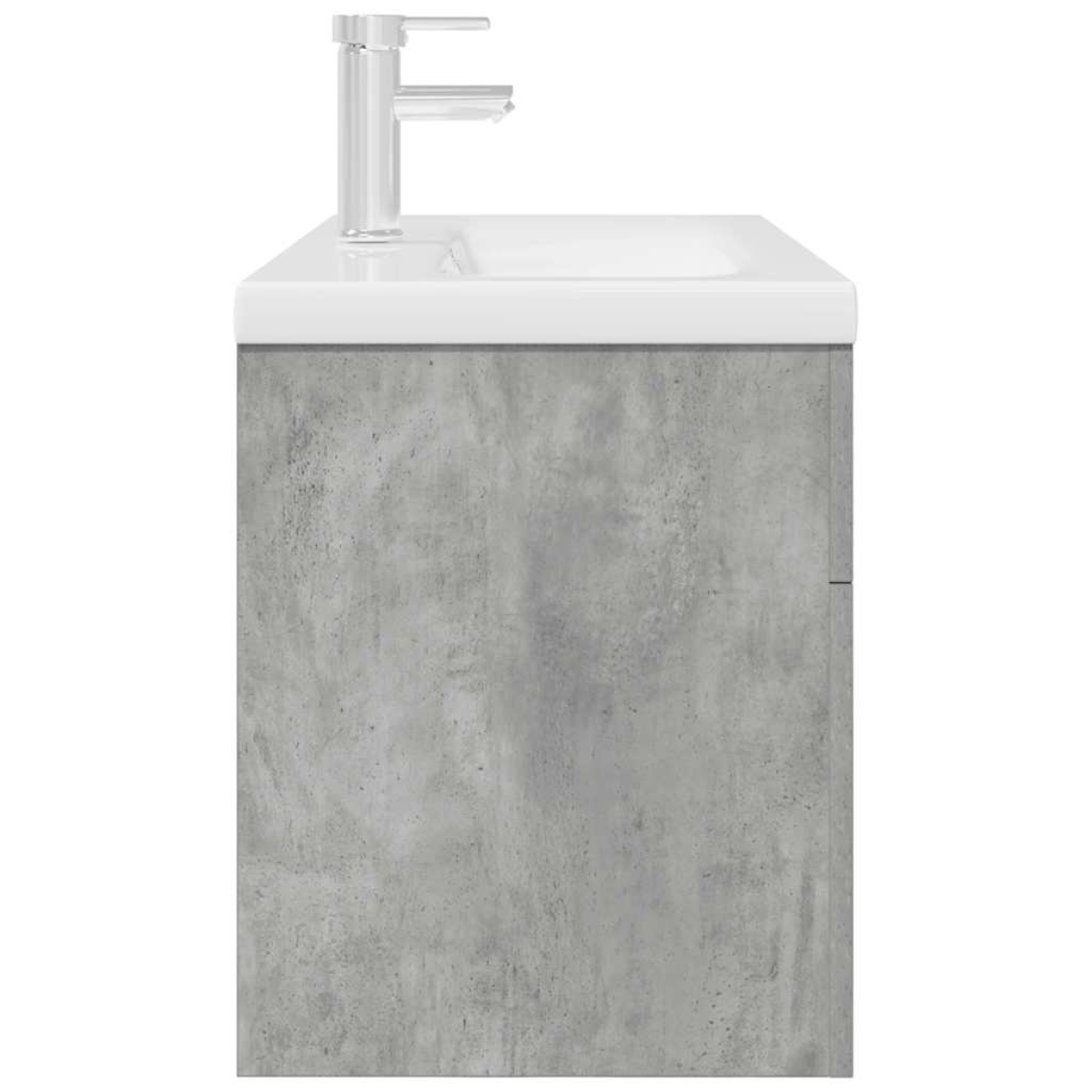 This stylish sink cabinet with a built-in basin, featuring spacious storage space, is an excellent addition to your bathroom, giving it a tidy and striking appearance!Long-lasting material: The engineered wood is of exceptional quality with a smooth surface and also features strength, stability, and resistance to moisture.Ample storage space: The bathroom sink cupboard offers ample space to easily accommodate your essential toiletries and bath items such as soaps, shampoo, toothpaste, etc.Space-saving design: The top of the bathroom cabinet is ideal for placing the sink so that you can fully utilise the vacant space under the sink.Wall-mounted function: The bathroom cabinet can be wall-mounted to add extra storage space. That way, you can maximise your floor space and keep the area clean.Overflow function: An overflow is also equipped to flow water out when it gets too full.Good to know:Screws and plugs for inside the wall are not included. We advise to find and use screws and plugs suitable specifically for your walls. If you're not sure, you can consult with a professional. Please read and follow each step of the instructions.The faucet and push drainer with overflow function are included.The tap is a hot and cold tap, and if you have a need for hot water, a water heater must be connected.