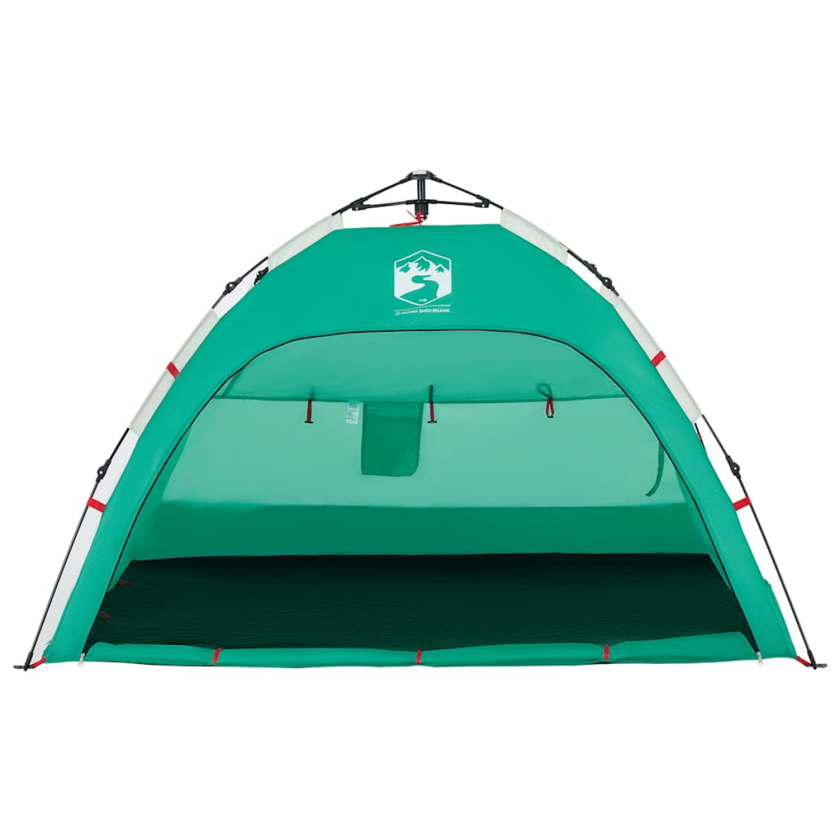 This beach tent offers you and your friends a cosy shelter in the hot summer or use it as a shade over the sandpit and paddling pool. Waterproof: This camping tent, made from polyester with a PU coating, is waterproof and wind resistant.Quick-release system: Set up the tent effortlessly with the quick-release system! Lay the tent down, extend the pre-assembled poles until they lock into place, and you're all set!Dual-window design: The mesh window provides great ventilation and keeps insects out, while the waterproof window offers protection from wind and rain.Easy access: The zippered door allows for easy access. You can roll it up and secure it with the door toggles. It also promotes airflow and provides ample natural light.Stable and safe: Secure your tent firmly to the ground with the stakes and guy ropes provided to ensure stability and safety. Warning:Keep all flame and heat sources away from this product fabric.