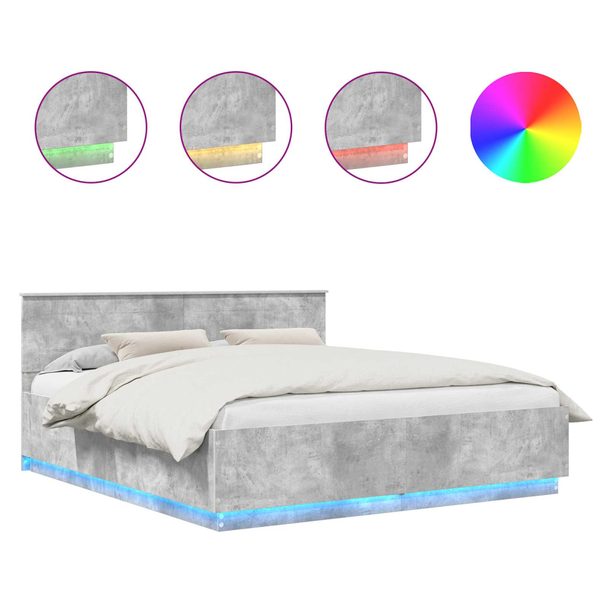 This modern bed frame will transform your bedroom with its sleek and contemporary design. Its frame, precision-crafted from engineered wood, offers a clean, minimalist look perfectly suited for any modern setting. Designed to enhance your sleeping experience, the bed features an adjustable headboard and calming LED strip lights for a beautifully illuminated backdrop –setting a delightful mood for relaxation. Materials: The bed frame is constructed from high-quality engineered wood, known for its strength and resistance to warping. This material choice ensures a consistent appearance and integrity, enhancing the modern aesthetic of your bedroom while providing stability and durability. Included Components: The bed comes complete with an adjustable, wall-mounted headboard that provides customizable support and an integrated storage solution. LED strip lights enhance the frame, offering ambient lighting options, while a handy USB plug allows for device charging right from the comfort of your bed. Features /Function /Design: An adjustable headboard provides personalized comfort, supporting various sitting positions for reading or relaxing. The USB port supports convenient gadget charging without messy cables, while multicolor LED lights add a touch of elegance and personalization to your space. Recommended Uses: Perfect for modern, minimalist bedroom settings, this bed frame's stylish appearance can transform any bedroom into a contemporary haven. Its adaptability makes it suitable for tech-savvy users who appreciate integrated electronics and a versatile sleeping environment. Care &Maintenance: To maintain the bed’s pristine look, simply wipe down with a damp cloth. This straightforward care requirement ensures the bed remains a visually appealing centerpiece while extending its lifespan.