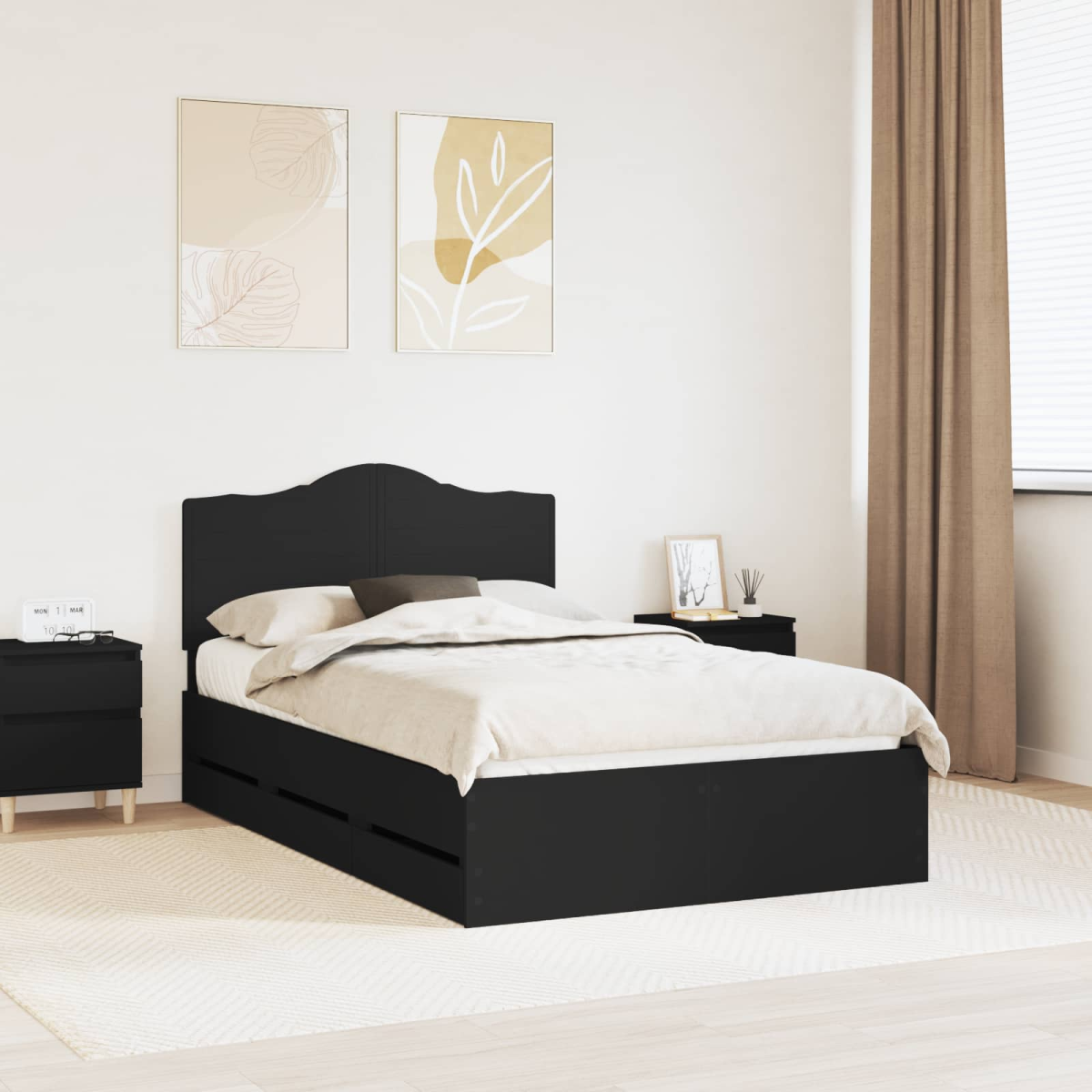 vidaXL Bed Frame with Drawer Black 120 x 190 cm Engineer Wood