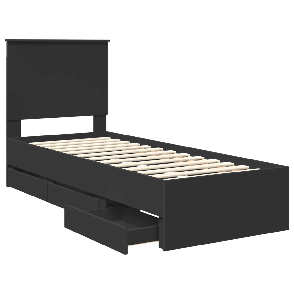 This Modern Bed Frame offers a sleek and minimalist design, perfect for contemporary bedroom setups. Crafted from engineered wood, its simple yet stunning appearance is both functional and aesthetically pleasing, elevating any room's look. Designed with clean lines and a smooth finish, this bed frame brings a tranquil ambiance to the bedroom, making it ideal for those seeking simplicity and elegance. Its versatile design seamlessly fits into various interior styles, providing the ultimate platform for a peaceful night's rest. Engineered Wood Frame This bed frame is constructed from premium engineered wood, known for its superior strength and abrasion resistance. This choice of material ensures a sturdy and reliable frame, welcoming users with a durable sleep setup that withstands everyday use. The engineered wood offers a refined look, enhancing the bedroom's appeal while providing robust support for nightly relaxation. Free-Standing Floor Design Enjoy the flexible placement options of this bed frame, which operates as a free-standing floor model. This means you can easily position it in a way that complements your bedroom layout without needing wall support. Its versatility makes it a practical addition, adaptable to any bedroom design or space constraints, ensuring convenience in room planning and setup. Fixed Slatted Frame The slatted base design offers rigid support for mattresses, distributing weight evenly and ensuring longevity. This base aligns with the bed frame's intention to combine affordability with function, creating a comfortable sleeping experience without sacrificing structural integrity. The reliance on rigid slats provides stability and consistency for a restful night's sleep. Hidden Drawer Storage This bed frame features hidden drawer compartments, offering discreet storage for personal items and decluttering bedroom surfaces. These concealed spaces maintain the minimalist aesthetic of the room while adding practicality. Perfect for storing seasonal clothes or rarely-used items without impacting the bedroom's atmosphere. Easy Maintenance Maintain the bed frame's elegant appearance by wiping it with a damp cloth. This simple care routine allows you to easily remove dust and maintain its polished look. The convenience of minimal upkeep aligns with the frame's design ethos, promising enduring style with negligible effort.