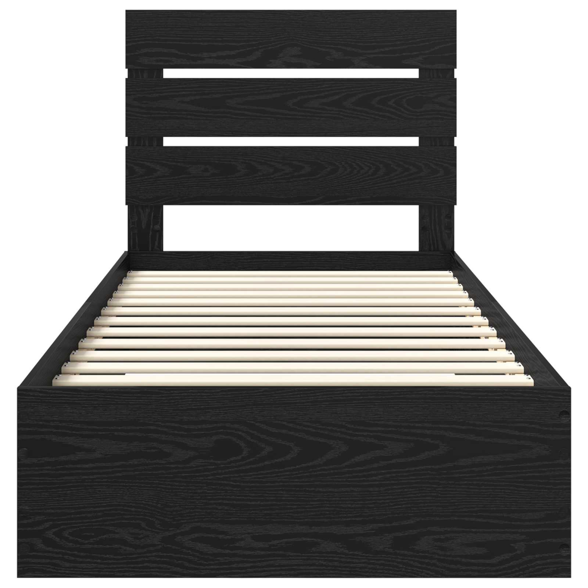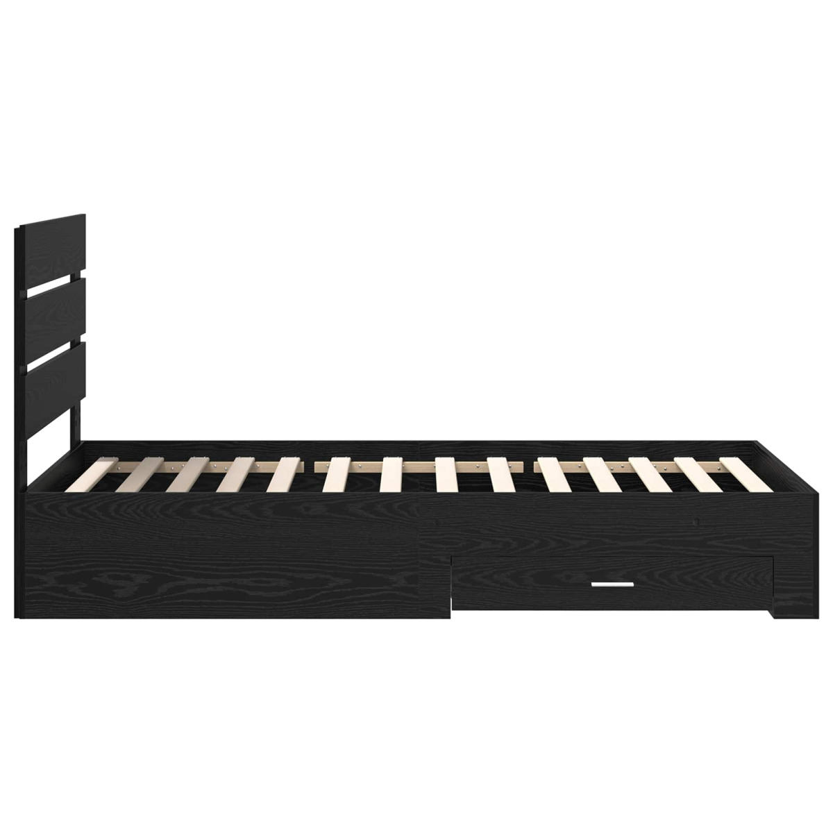 This Modern Storage Bed Frame transforms your bedroom into a sleek and organized sanctuary. Designed for those who appreciate clean lines and seamless functionality, this bed frame enhances the aesthetic of contemporary living spaces. Ideal for urban apartments or minimalist homes, its rectangular shape provides a sophisticated yet cozy charm. The fusion of style and practicality will allow you to appreciate restful nights and uncluttered days. Engineered Wood Frame Constructed with high-quality engineered wood, this durable frame withstands daily use while maintaining its pristine appeal. Engineered wood is selected for its resistance to wear and tear, offering a sleek, modern look that complements existing decor. Included Storage Drawers Built-in storage drawers provide practical solutions for space-constrained bedrooms. These traditional drawers easily open with silver-colored bar handles, perfect for storing clothes, bedding, and other personal items. Sleek Modern Design The bed frame features a modern aesthetic characterized by clean lines and minimal ornamentation. This design approach creates a sense of openness and refinement, ideal for adding sophistication to any bedroom. Functional Headboard The finished headboard, crafted from sturdy engineered wood, offers comfort and support when sitting up in bed. Its presence enhances the room's overall decor and adds an element of luxury. Simple Maintenance Easy-care features include a smooth surface that only requires wiping with a damp cloth. Maintaining the bed's fresh and clean look requires minimal effort, ensuring it remains a centerpiece for years to come.