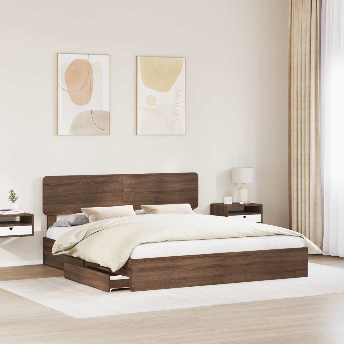 vidaXL Bed Frame with Drawer Brown Oak 200 x 200 cm Engineered Wood