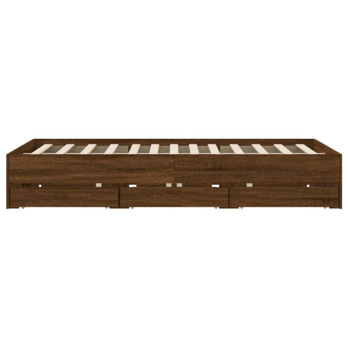 Add a modern touch to your bedroom with this bed frame with drawers! It makes a practical and decorative addition to your living space. Durable material: The bed frame is made of engineered wood. The engineered wood is of exceptional quality with a smooth surface and also features strength, stability, and resistance to moisture.Sturdy slats: The plywood slats provide good weight distribution, ensuring the mattress stays in place with every twist and turn of your body during sleep.Storage function: The included bed drawers provide ample storage space for storing your essentials, keeping your room clean and tidy. Good to know:A mattress is not included with this bed. We do offer a various selection of mattresses. You can check our shop for a matching mattress.