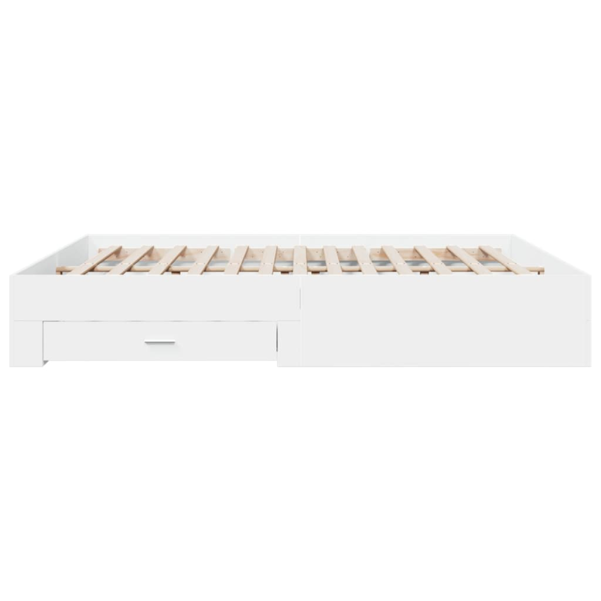Add a modern touch to your bedroom with this bed frame with drawers! It makes a practical and decorative addition to your living space. Durable material: The bed frame is made of engineered wood. The engineered wood is of exceptional quality with a smooth surface and also features strength, stability, and resistance to moisture.Sturdy slats: The plywood slats provide good weight distribution, ensuring the mattress stays in place with every twist and turn of your body during sleep.Storage function: The included bed drawers provide ample storage space for storing your essentials, keeping your room clean and tidy. Good to know:A mattress is not included with this bed. We do offer a various selection of mattresses. You can check our shop for a matching mattress.