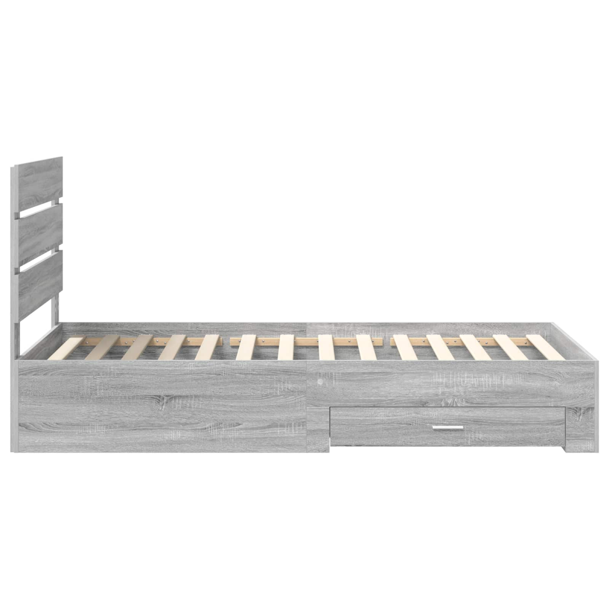 This Modern Storage Bed Frame combines style and functionality, making it a perfect addition to any contemporary bedroom. With its sleek design and engineered wood construction, this bed frame offers a unique blend of aesthetics and utility. The minimalist lines and modern appeal indicate a sophisticated taste, blending seamlessly within urban apartments or modern homes. The frame's integrated storage features mean it is not just a resting place, but a central part of bedroom organization, accommodating those who value both style and substance. Materials: Crafted with high-quality engineered wood and secondary metal components, this bed frame doesn't just offer impressive aesthetics; it promises long-term durability. The resilient nature of the materials ensures a robust structure, providing support and stability to each user. Furthermore, the materials continue to maintain their pristine condition after years of use, ensuring you continue to enjoy the visual pleasure of this elegantly simple design for time to come. Included Components: The modern bed frame comes complete with a fully functional headboard crafted from engineered wood, offering both style and comfort support. The structure also boasts traditional drawers with polished metal bar handles for smooth, convenient access. All elements, from the fixed slatted frame to the sleek handles, work together to offer a cohesive product experience, ensuring users have everything they need for optimal comfort and organizational ease. Features /Function /Design: Featuring a sleek, modern aesthetic, this bed frame integrates wide-ranging practical elements such as ample storage, offering plenty of room to organize personal items. The water-resistant finish adds protection, ensuring spills and moisture do not compromise its quality. These combined features enhance everyday usability, offering both simplicity and sophistication to various bedroom styles. Recommended Uses: Ideal for urban apartments, minimalist homes, or any space seeking a clever blend of form and functionality, this storage bed frame is as scenic as it is pragmatic. It facilitates an organized bedroom setup by reducing clutter yet exuding style. Care &Maintenance: Keeping this bed frame looking its best is simple; merely wipe with a damp cloth to clean surfaces and ensure its polished look endures. Minimal care ensures ongoing enjoyment of this sophisticated bed frame as a lasting component of your home.