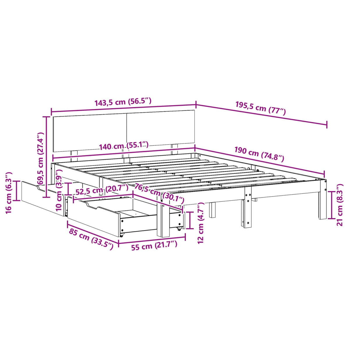 BuytoGive | Buy now | vidaXL Bed Frame with Headboard 3 pcs Wax Brown Solid Pine Wood