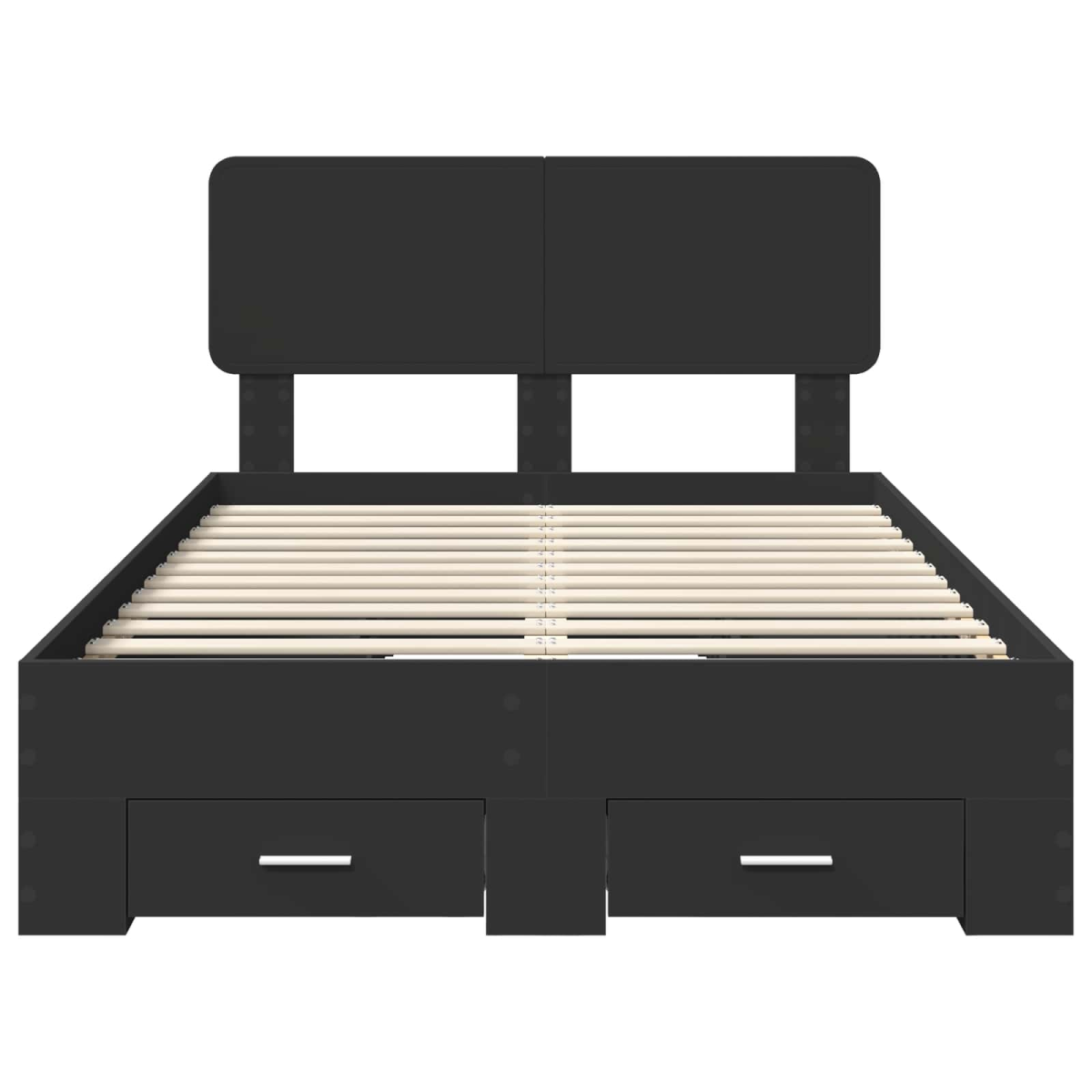This modern storage bed frame flawlessly blends function and style, offering a sleek and contemporary solution for your bedroom. Its elegant design, characterized by straight lines and minimal ornamentation, perfectly complements modern decor. Ideal for those seeking a balance between style and practicality, this bed frame offers ample storage through its integrated drawers, making it perfect for small spaces or organized living. Engineered Wood Structure Built from high-quality engineered wood, this bed frame guarantees stability and longevity. Its resilient construction handles daily wear with ease and complements any contemporary bedroom aesthetic, ensuring a lasting presence in your living space. Integrated Storage Drawers Our modern storage bed frame features drawers crafted from the same engineered wood, providing ample space to store bed linens, clothes, or extra pillows. This design optimizes space, keeping your bedroom organized without sacrificing style. Rigid Slatted Frame The bed's fixed slatted frame consists of sturdy wooden slats that offer dependable support for your mattress, enhancing comfort and breathability. Ideal for sleepers who prefer a stable base, this setup guarantees restful nights. Sleek Headboard Design Complete with an engineered wood headboard, this bed accentuates the clean lines and modern look. It serves as a comfortable backrest for reading or lounging, adding another layer of functionality to your bedroom ensemble. Effortless Maintenance Simply wipe the bed frame with a damp cloth to maintain its pristine appearance. Minimal upkeep keeps your investment looking fresh and welcoming for years.