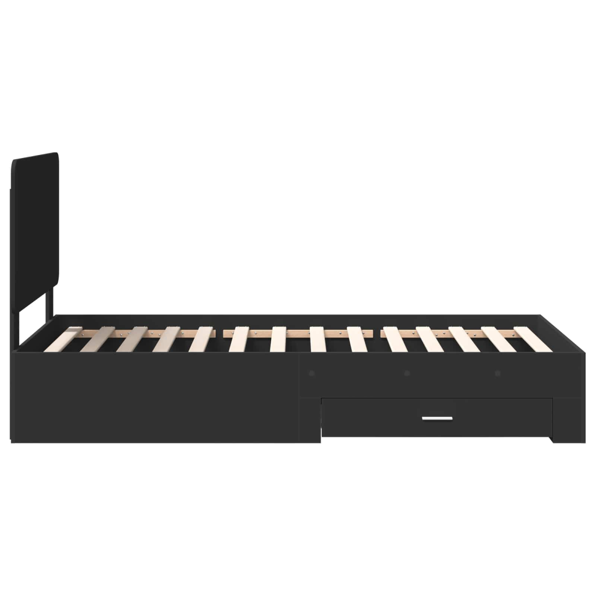 This Modern Bed Frame elevates your bedroom's aesthetic with its sophisticated simplicity and practical functionality. Crafted from engineered wood, it's characterized by sleek lines and an unadorned, minimalist style that enhances contemporary spaces beautifully. The robust platform design ensures firm, reliable support for your mattress, perfect for those seeking both style and substance in their sleeping environment. The headboard integrates seamlessly, combining practicality with elegance for an impeccable bedroom centerpiece. Durable Engineered Wood: Constructed from high-grade engineered wood, this bed frame highlights exceptional durability and a refined appearance. Engineered wood’s strength ensures longevity, offering lasting value, especially beneficial in high-use spaces like bedrooms. Its smooth finish also simplifies cleaning, requiring nothing more than a quick wipe with a damp cloth. This material choice supports both style and function, maintaining an attractive look over time. Platform Slatted Frame: This bed features a platform slatted frame that provides firm, even support, eliminating the need for a box spring. The close-set slats provide optimal ventilation, promoting a healthy mattress environment. As a solid support base, it aids in reducing mattress sagging, prolonging its lifespan. It’s designed for stability, ensuring a peaceful night’s sleep without disturbances. Functional Headboard: The bed’s headboard, made from engineered wood, offers more than just style; it adds structural support and functions as a backrest for seated comfort. Its thoughtful design allows for reading or relaxing in bed, adding utility to its aesthetic appeal. This multifunctional element enhances engagement with the bed, inviting relaxation. Traditional Drawer Design: Featuring traditional pull-out drawers, this bed optimizes bedroom storage. Ideal for housing linens, clothing, or accessories, these drawers keep space organized without compromising style. Their engineered wood construction matches the bed’s overall look, maintaining design continuity while enhancing functionality. Minimalist Aesthetic: With a focus on simplicity, this design appeals to those who appreciate clean, unembellished furniture. Its modern style blends seamlessly into any bedroom setting, making it versatile for varied interior themes. The minimalist approach prioritizes function without foregoing design, aligning with contemporary decor for a balanced visual experience.