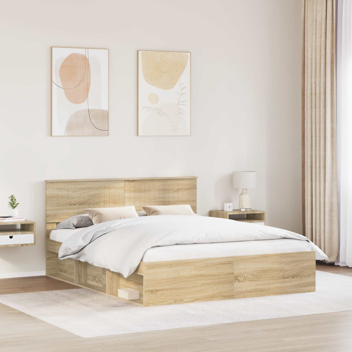 This modern bed frame offers both style and functionality, perfectly suited for contemporary bedroom decor. Its clean, sleek lines provide an elegant, minimalist look that can complement any bedroom interior. Engineered Wood Frame: Constructed from engineered wood, this bed frame provides a solid foundation and stability while offering a streamlined appearance. Its durable material ensures resilience over time, making it a reliable choice for long-term use. Fixed Slatted Base: The fixed slatted frame is made from rigid, non-flexible slats that support the mattress effectively. This structure allows for optimal airflow and support, enhancing your sleeping experience. Solid Pine Headboard: Designed with a solid pine wood headboard, this frame adds a touch of natural warmth to your bedroom. The headboard's simplicity integrates easily with varied decor themes, while its solid build offers dependable support. Room Aesthetic: Suitable for any contemporary bedroom, this bed frame transforms your space with its understated, modern look. Its minimalistic design allows for versatility in bedroom layouts, creating a tranquil and cohesive environment. Easy Maintenance: Maintain the aesthetic and durability of the bed frame by wiping it clean with a damp cloth. This easy-care approach keeps your bed looking fresh and new while saving time on upkeep.