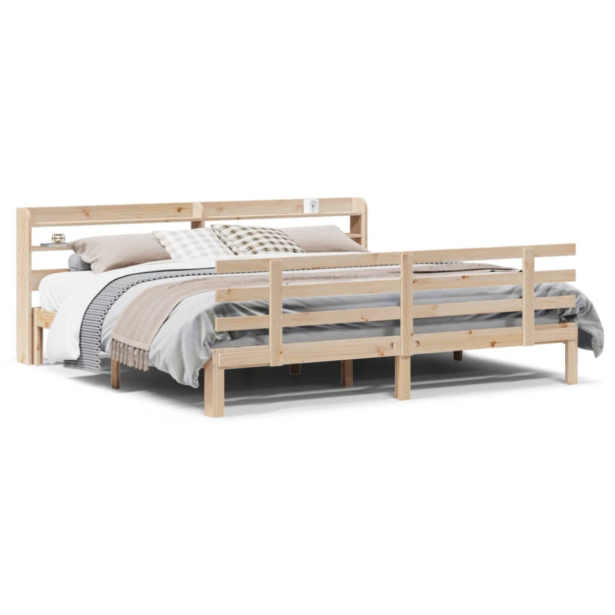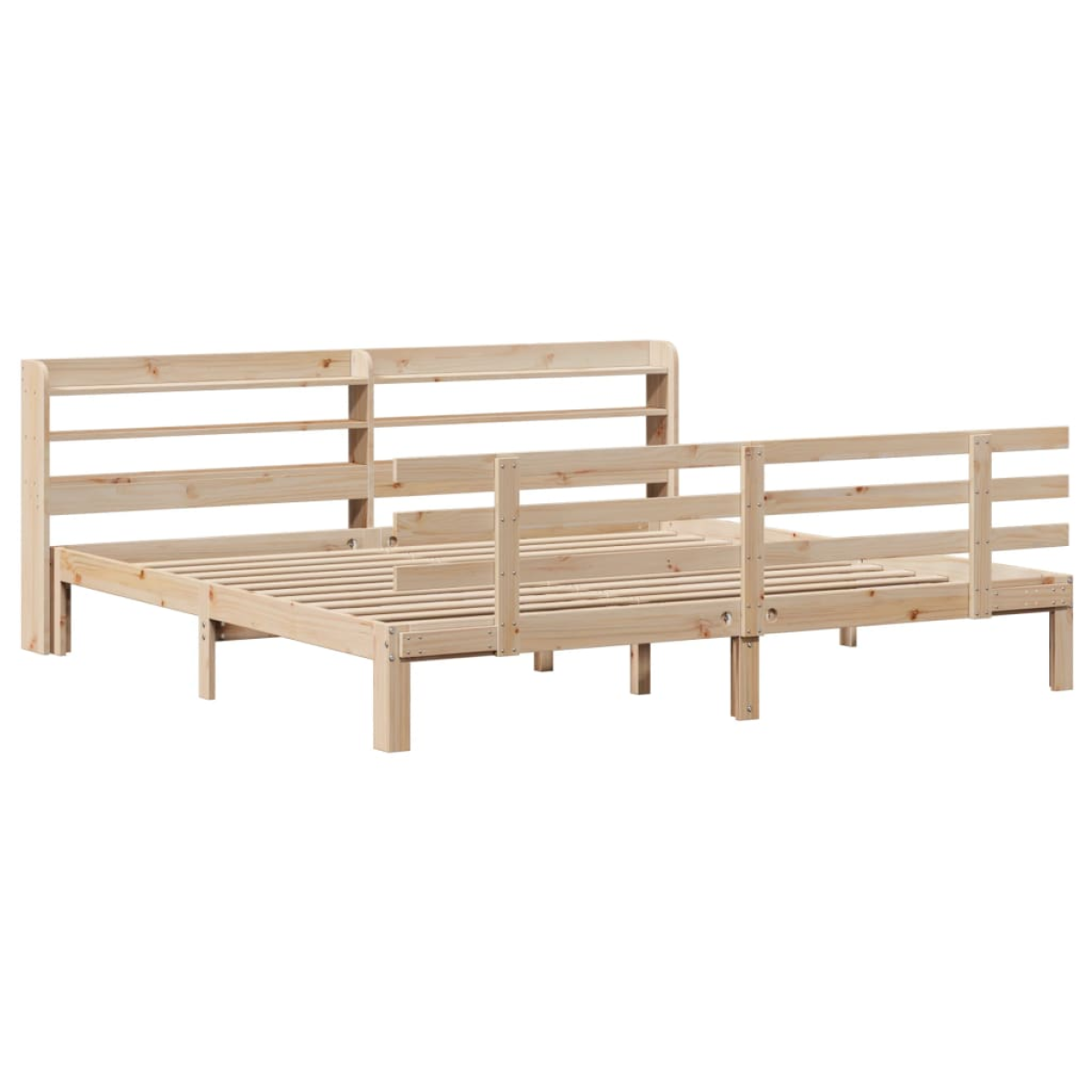 Enjoy a good night's sleep in this wooden bed frame! It makes a practical and decorative addition to your interior. Solid pine wood: Solid pine wood is a beautiful natural material. Pine wood has a straight grain, and the knots give the material its signature, rustic look.Sturdy bed frame: The wooden frame ensures sturdiness and stability. The plywood slats provide good weight distribution, ensuring that the mattress stays in place with every twist and turn of your body during sleep.Functional headboard and footboard: The headboard and footboard of the wooden bed can keep your mattress in place. Also, the headboard provides you with excellent back support when you sit up in bed to read or watch TV.Ample storage space: This sleek headboard features two convenient shelves, offering ample storage space to keep all your nighttime essentials within easy reach. Good to know:A mattress is not included with this bed. We do offer a various selection of mattresses. You can check our shop for a matching mattress.