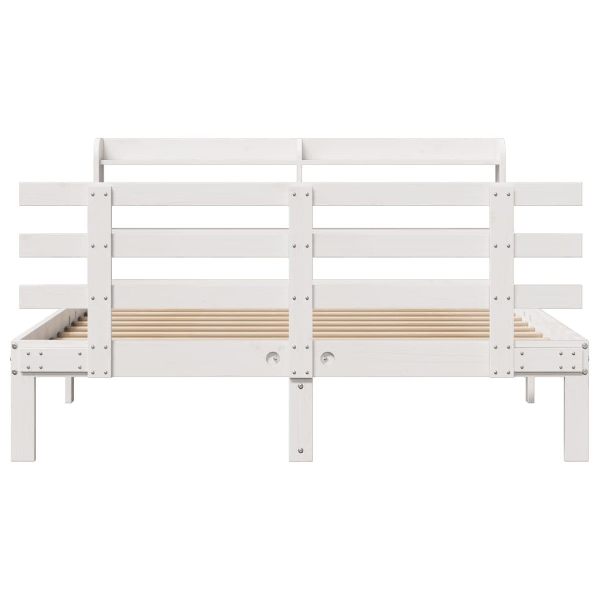 Enjoy a good night's sleep in this wooden bed frame! It makes a practical and decorative addition to your interior. Solid pine wood: Solid pine wood is a beautiful natural material. Pine wood has a straight grain, and the knots give the material its signature, rustic look.Sturdy bed frame: The wooden frame ensures sturdiness and stability. The plywood slats provide good weight distribution, ensuring that the mattress stays in place with every twist and turn of your body during sleep.Functional headboard and footboard: The headboard and footboard of the wooden bed can keep your mattress in place. Also, the headboard provides you with excellent back support when you sit up in bed to read or watch TV.Ample storage space: This sleek headboard features two convenient shelves, offering ample storage space to keep all your nighttime essentials within easy reach. Good to know:A mattress is not included with this bed. We do offer a various selection of mattresses. You can check our shop for a matching mattress.