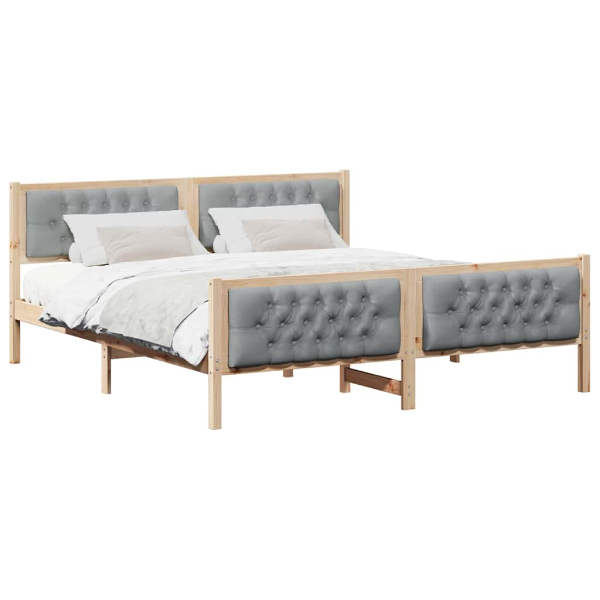This Modern Bed Frame encompasses the essence of minimalist design with its simple structure and fine craftsmanship. Crafted for the contemporary bedroom, this piece offers a sleek, orderly look that pairs effortlessly with various decors. Its solid pine wood construction ensures stability, while the 100% polyester upholstered headboard adds a soft, inviting touch. Suitable for indoor use, it seamlessly combines practicality and style for those who appreciate sophisticated elegance. Frame Material: Constructed from solid pine wood, the bed frame ensures reliable support and robustness. This hardwood offers a natural aesthetic while resisting everyday wear and tear, preserving its integrity over years of use. Its structured shape contributes to both the visual and functional stability, making it a practical choice for any home. Headboard Design: The upholstered headboard made of plaster and 100% polyester provides both comfort and a modern look. It serves as a cozy backdrop for reading or watching TV, while its sophisticated appearance enhances the room's decor effortlessly. This headboard aligns with the minimalist ideals of the frame by incorporating subtle, refined elegance. Fixed Slatted Frame: Equipped with a rigid, non-flexible slatted frame, this design offers consistent mattress support for a restful night's sleep. While maintaining a budget-friendly approach, it provides stable and adequate support to maximize comfort. Its construction also ensures the mattress stays in place. Contemporary Legs: Square legs fashioned from solid pine wood boost the overall structural support. These sturdy legs add a touch of contemporary flair, balancing style with reliable functionality. Their square form complements the bed's aesthetic, affirming its strong yet refined character. Care Instructions: To maintain the bed's appearance, simply wipe the structure with a damp cloth. This straightforward approach ensures a perpetually fresh look without demanding complex maintenance, adding convenience to beauty and utility.