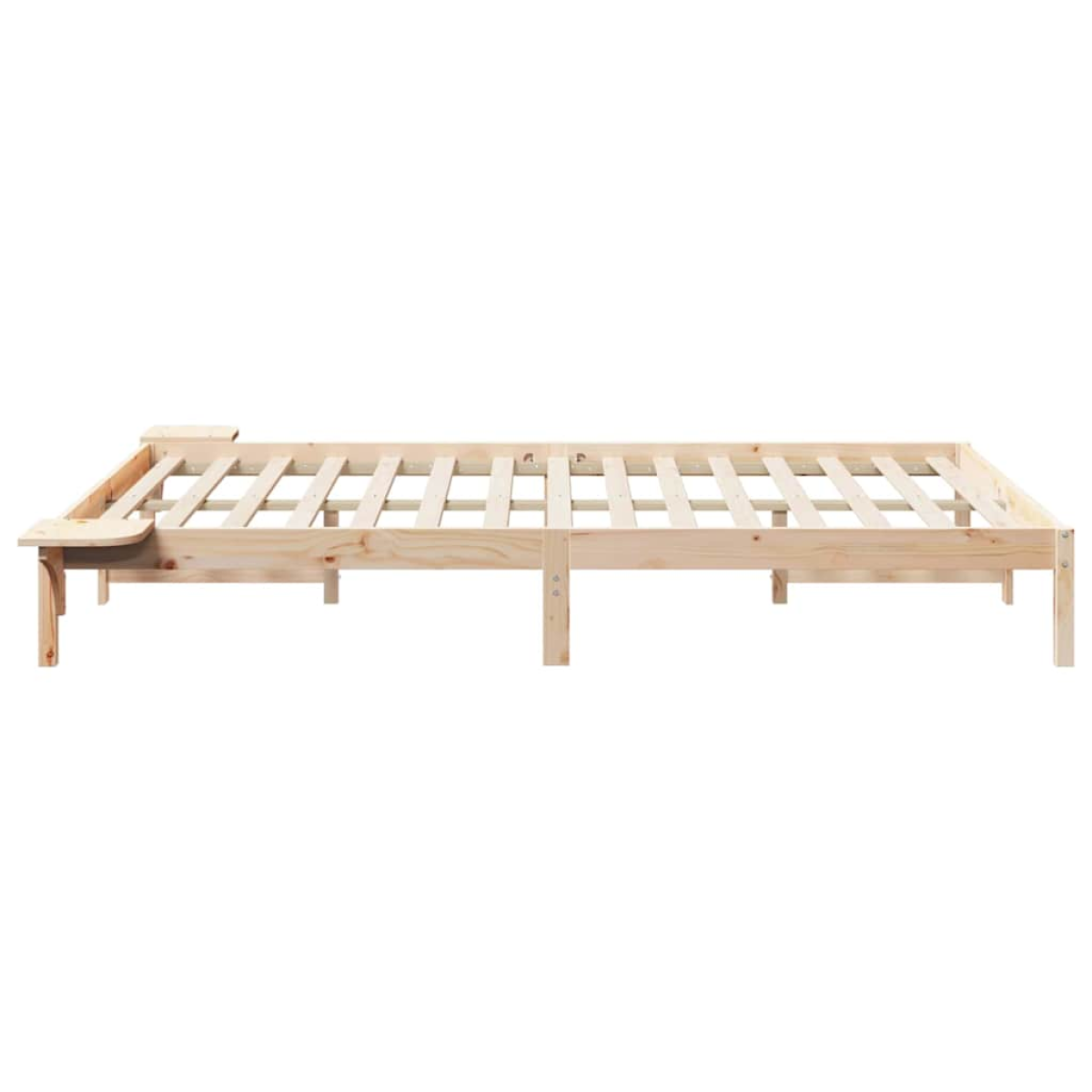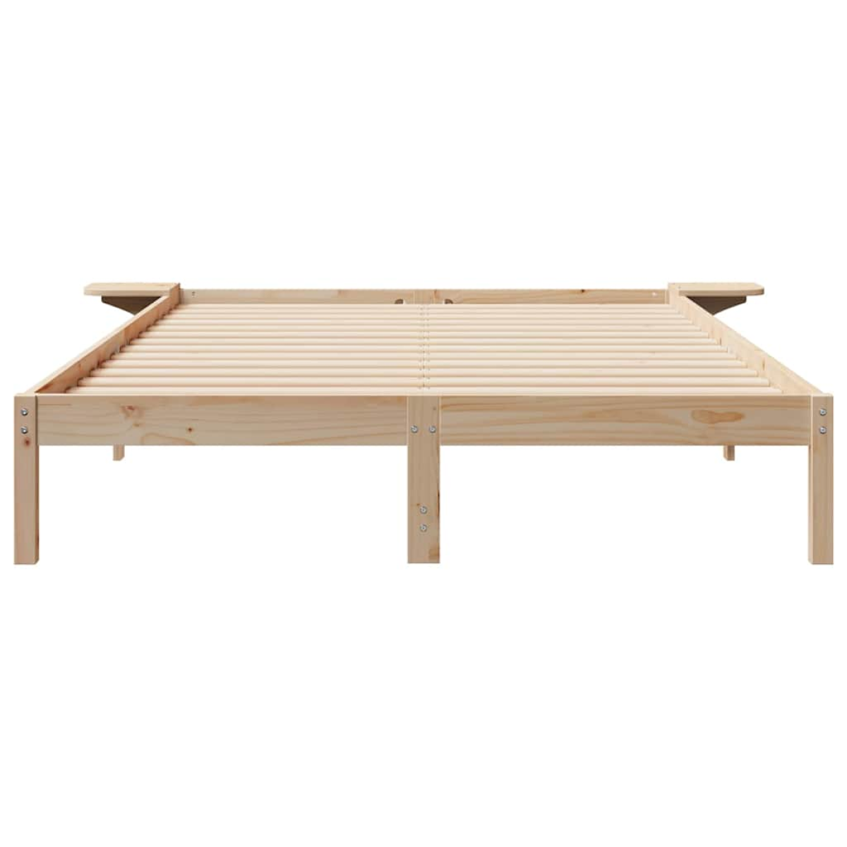 This bed frame is an exceptional addition to any modern bedroom, combining sleek design with ultimate functionality. Integrating side tables, it offers a sophisticated aesthetic while maximizing space by providing a convenient spot for bedside essentials. With a smooth finish and a solid pine wood structure, this platform bed frame is as elegant as it is practical, seamlessly fitting into contemporary home interiors. Quality Materials: Crafted from solid pine wood, this bed frame exudes strength and durability while offering a timeless look that complements modern aesthetics. The inclusion of plywood adds a lightweight and smooth finish, ensuring that the architecture remains robust yet adaptable, perfect for any stylish home. Integrated Side Tables: This unique design adds convenience with built-in side tables, providing easy access to night-time essentials like books, glasses, and lamps. It optimizes your bedroom space and eliminates the need for separate bedside furniture, making your room feel more open and organized. Sleek Design: The platform bed showcases a minimalist approach with its clean lines and sapient contours, embodying simplicity and efficiency. Its modern appearance offers versatility, making it suitable for any setting, whether in a contemporary loft or a minimalist suburban home. Solid Leg Construction: The square legs made from durable pine wood provide excellent support and stability. This design guarantees a firm foundation while adding a sophisticated touch that pairs well with the bed's modern design philosophy. Easy Care &Maintenance: Simple maintenance is achieved with a wipe of a damp cloth, preserving the bed's elegant appearance with ease. Assembly is required by two people, utilizing just a screwdriver, ensuring that this bed frame suits those who appreciate straightforward, classic craftsmanship.