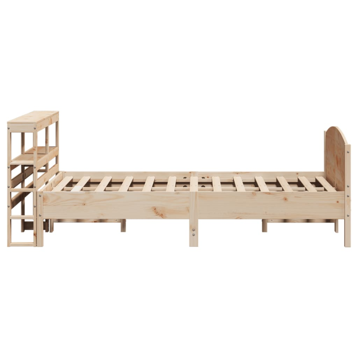 Get a better restful night's sleep from this bed frame! It makes a welcoming addition to any bedroom. Stable and long-lasting frame: Solid pinewood is known for its strength and durability. Its straight grains and distinctive knots contribute to its rustic charm.Slatted base for optimal support: The bed frame is equipped with a slatted base for support and breathability for your mattress.Versatile headboard: This bed frame comes with a headboard that provides excellent back support when you sit up in bed to read or watch TV, while also serving as a decorative element.Ample storage space: This sleek headboard features two convenient shelves, offering ample storage space to keep all your nighttime essentials within easy reach. Good to know:A mattress is not included with this bed. We do offer a various selection of mattresses. You can check our shop for a matching mattress.