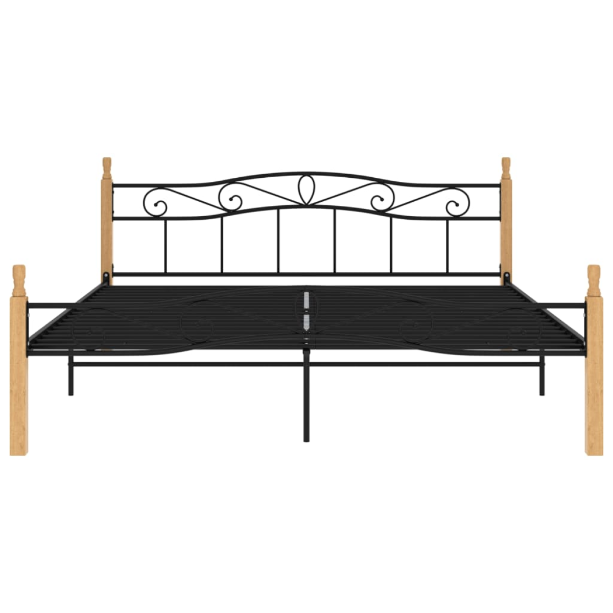 vidaXL Bed Frame without Mattress Black Metal&Solid Oak Wood 200x200 cm
