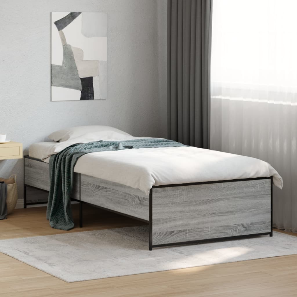 vidaXL Bed Frame without Mattress Grey Sonoma 75x190 cm Small Single