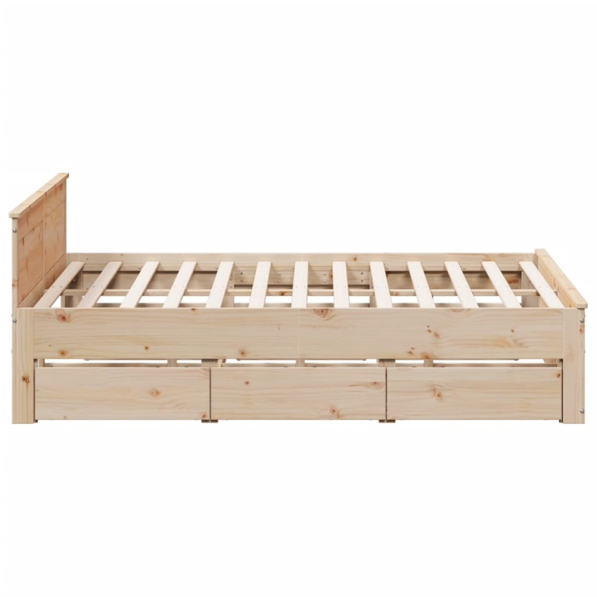 Get a better restful night's sleep from this bed frame! It makes a welcoming addition to any bedroom. Stable and long-lasting frame: Solid pinewood is known for its strength and durability. Its straight grains and distinctive knots contribute to its rustic charm.Slatted base for optimal support: The bed frame is equipped with a slatted base for support and breathability for your mattress.Stable and durable feet: This bed is supported by sturdy feet, ensuring stability, safety, and firmness.Functional headboard: The headboard of the wooden bed can keep your mattress in place. Also, the headboard provides you with excellent back support when you sit up in bed to read or watch TV.Storage function: This bed frame offers drawers for keeping your magazines, books, toys and other small items well-organised. Good to know:A mattress is not included with this bed. We do offer a various selection of mattresses. You can check our shop for a matching mattress.