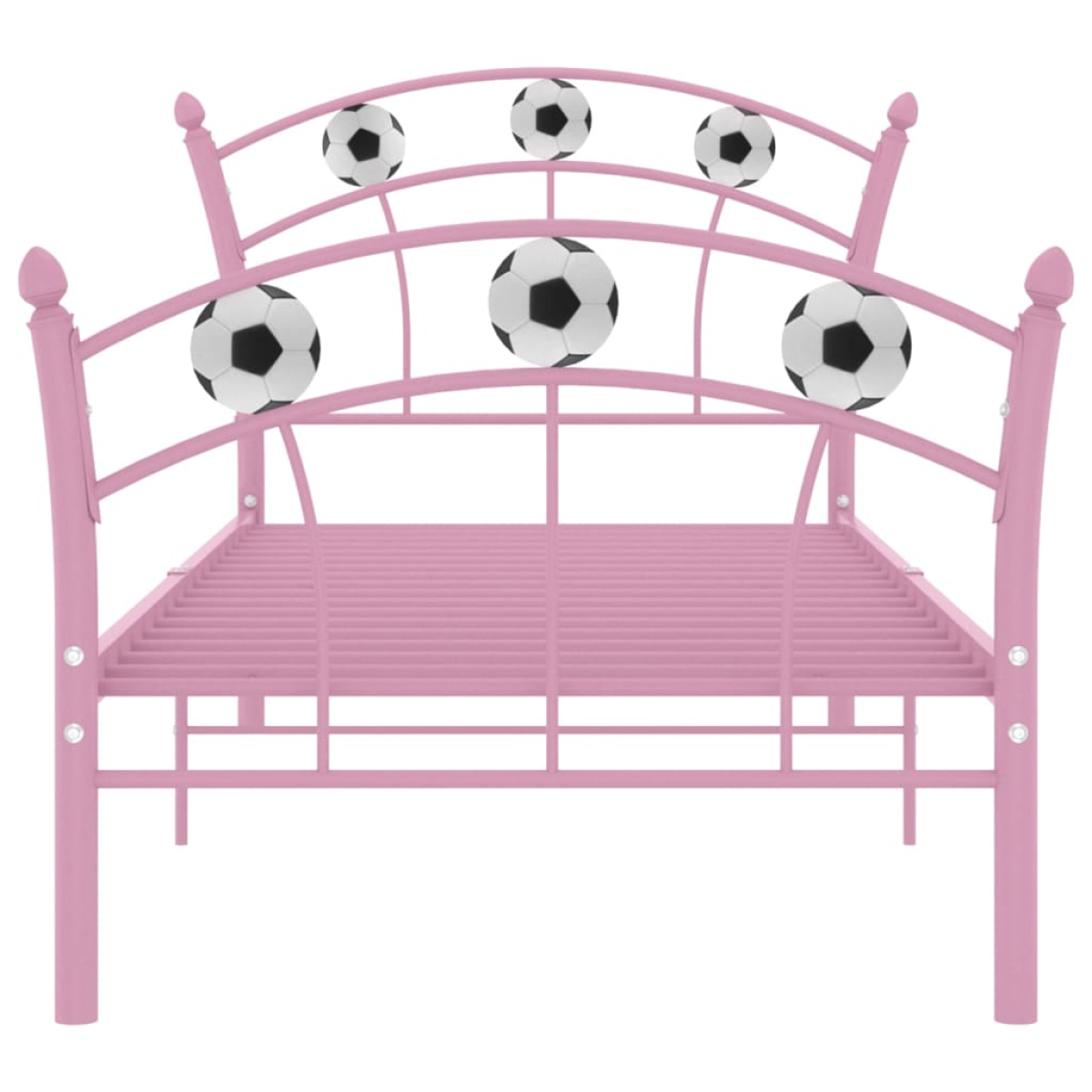 Enjoy a good night's sleep in this comfortable metal bed frame! Featuring a football design, this single bed is aesthetically pleasing and will be the focal point of your bedroom. The bed has a solid construction made of powder-coated metal, making it exceedingly sturdy and durable. The sturdy slats offer the needed support and comfort. You can enjoy great sleeping experience every night on this bed! Please note: The delivery includes the bed frame only. Mattresses are not included. You can check our shop for the matching mattresses.