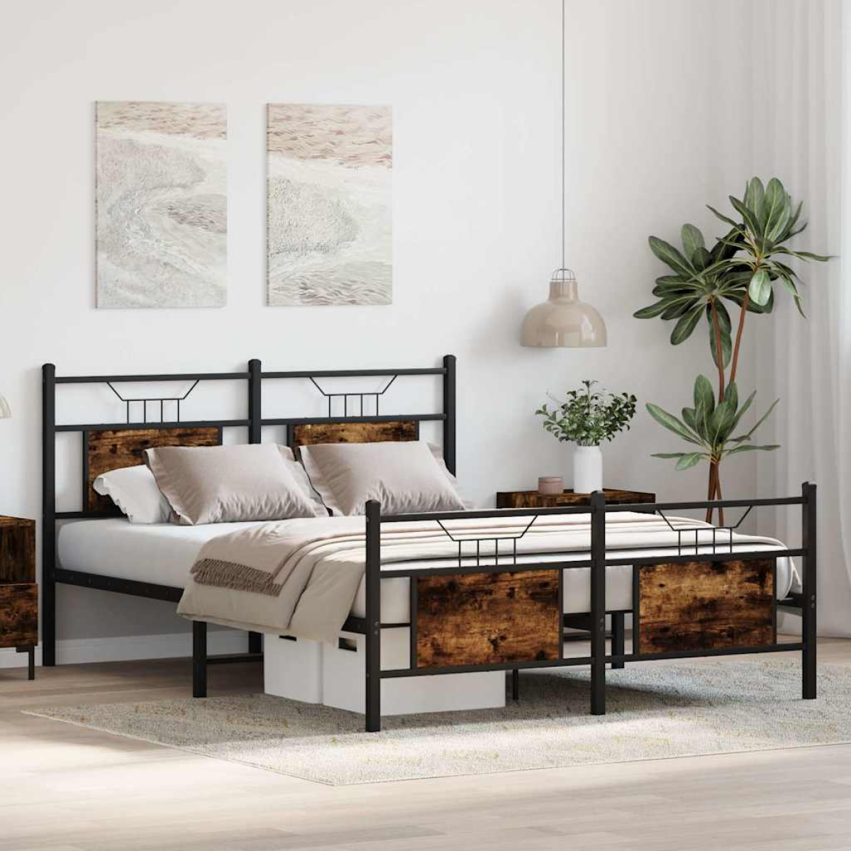 BuytoGive | Buy now | vidaXL Bed Frame without Mattress Smoked Oak 140x200 cm Engineered Wood
