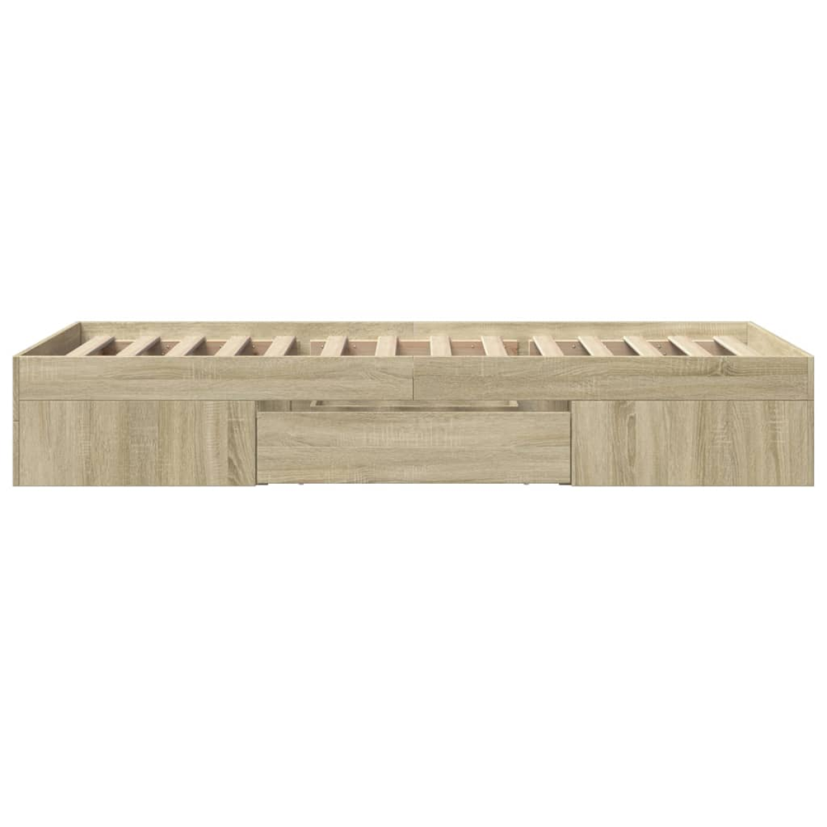Get a better restful night's sleep from this bed frame! It makes a welcoming addition to any bedroom. Durable material: The bed frame is made of engineered wood. The engineered wood is of exceptional quality with a smooth surface and also features strength, stability, and resistance to moisture.Slatted base for optimal support: The bed frame is equipped with a slatted base for support and breathability for your mattress.Storage function: This bed frame offers drawers and open compartments for keeping your magazines, books, toys and other small items well-organised. Good to know:A mattress is not included with this bed. We do offer a various selection of mattresses. You can check our shop for a matching mattress.
