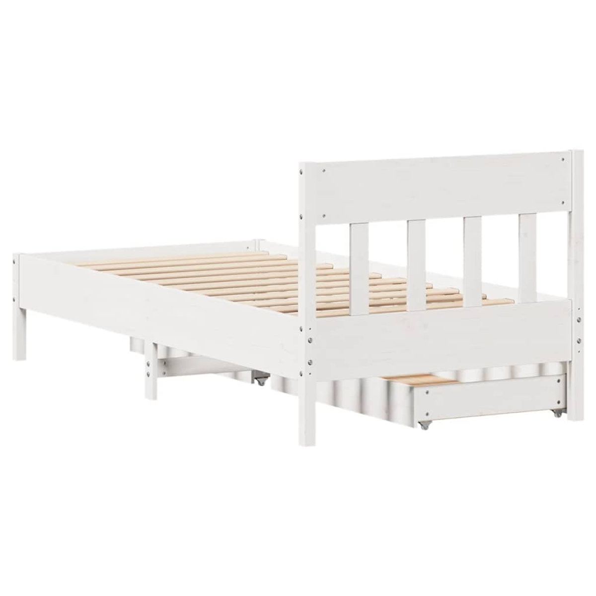 Get a better restful night's sleep from this bed frame! It makes a welcoming addition to any bedroom. Stable and long-lasting frame: Solid pinewood is known for its strength and durability. Its straight grains and distinctive knots contribute to its rustic charm.Slatted base for optimal support: The bed frame is equipped with a slatted base for support and breathability for your mattress.Versatile headboard: This bed frame comes with a headboard that provides excellent back support when you sit up in bed to read or watch TV, while also serving as a decorative element.Make full use of space: This bed frame features two drawers underneath, providing storage for items like extra bedding, seasonal clothing, and toys.Effortless manoeuvrability: This under-bed storage drawer features four wheels, providing smooth and effortless manoeuvrability for sliding in and out from beneath your bed. Good to know:A mattress is not included with this bed. We do offer a various selection of mattresses. You can check our shop for a matching mattress.