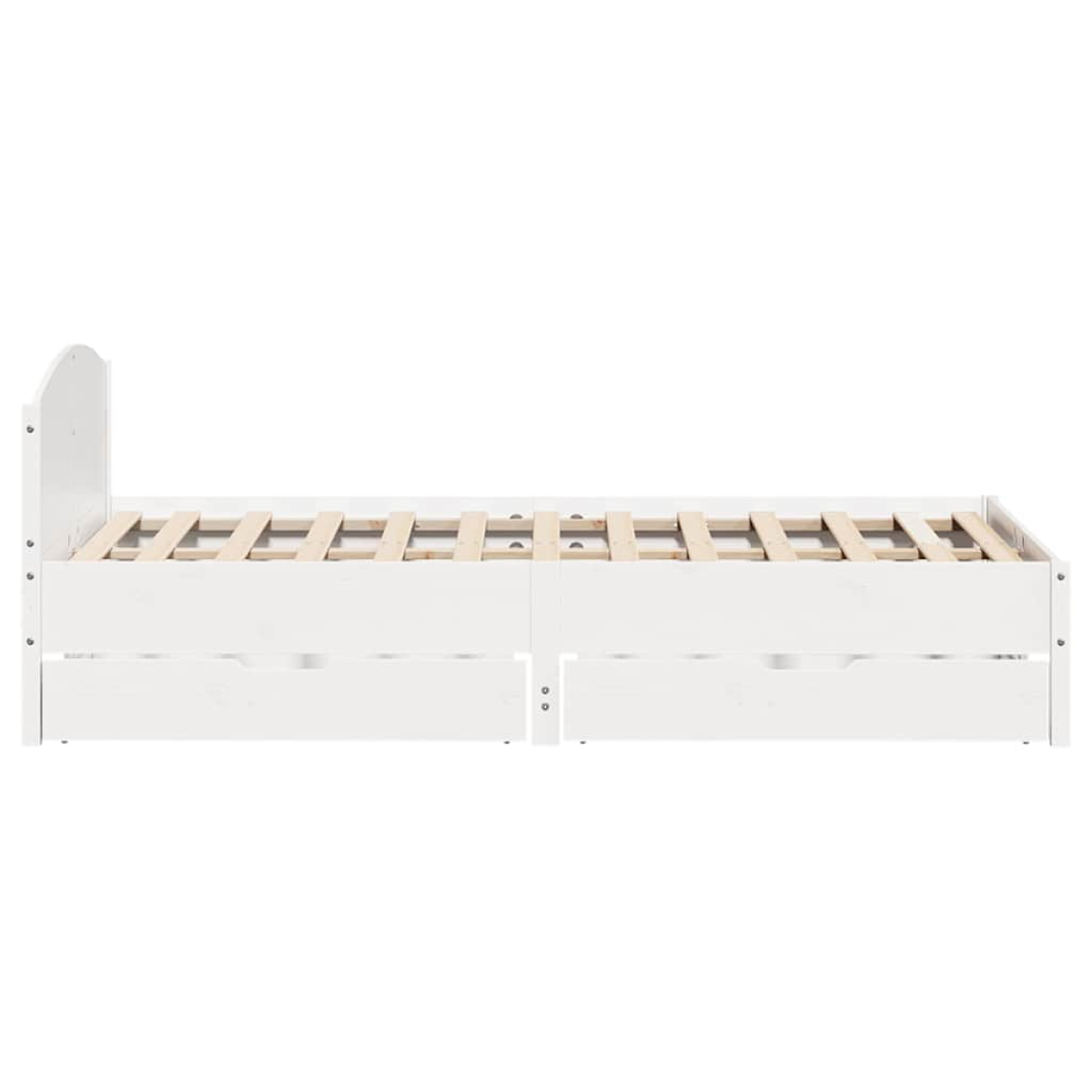 Get a better restful night's sleep from this bed frame! It makes a welcoming addition to any bedroom. Stable and long-lasting frame: Solid pinewood is known for its strength and durability. Its straight grains and distinctive knots contribute to its rustic charm.Slatted base for optimal support: The bed frame is equipped with a slatted base for support and breathability for your mattress.Versatile headboard: This bed frame comes with a headboard that provides excellent back support when you sit up in bed to read or watch TV, while also serving as a decorative element.Make full use of space: This bed frame features two drawers underneath, providing storage for items like extra bedding, seasonal clothing, and toys.Effortless manoeuvrability: This under-bed storage drawer features four wheels, providing smooth and effortless manoeuvrability for sliding in and out from beneath your bed. Good to know:A mattress is not included with this bed. We do offer a various selection of mattresses. You can check our shop for a matching mattress.