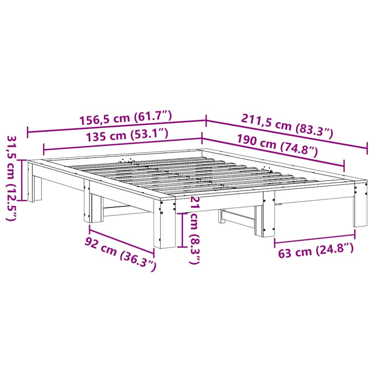 Get a better restful night's sleep from this bed frame! It makes a welcoming addition to any bedroom. Stable and long-lasting frame: Solid pinewood is known for its strength and durability. Its straight grains and distinctive knots contribute to its rustic charm.Slatted base for optimal support: The bed frame is equipped with a slatted base for support and breathability for your mattress.Stable and durable feet: This bed is supported by sturdy feet, ensuring stability, safety, and firmness. Good to know:A mattress is not included with this bed. We do offer a various selection of mattresses. You can check our shop for a matching mattress.