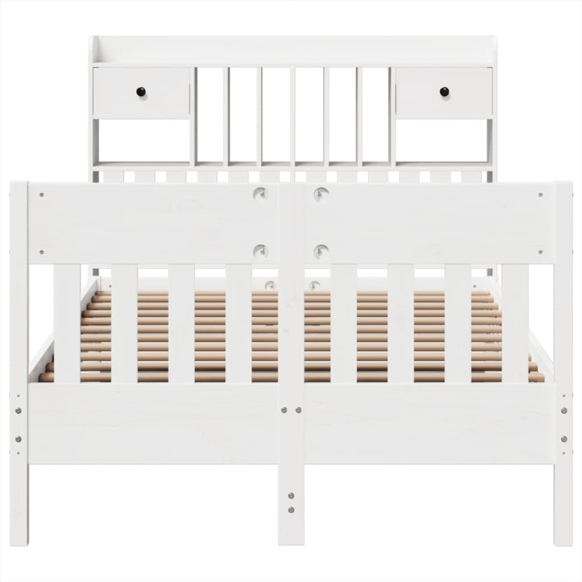 Enjoy a good night’s sleep in this wooden bed frame! It makes a practical and decorative addition to your interior. Stable and long-lasting frame: Solid pinewood is known for its strength and durability. Its straight grains and distinctive knots contribute to its rustic charm.Slatted base for optimal support: The bed base is equipped with a slatted base for support and breathability for your mattress.Extra storage space: This sleek headboard features 6 convenient compartments and 2 drawers, offering ample storage space to keep all your nighttime essentials within easy reach. For convenience, the wooden bed has an extra space underneath to keep your storage boxes out of sight.Stable and durable feet: This bedstead is supported by sturdy feet, ensuring stability, safety, and firmness.Functional headboard and footboard: The headboard and footboard of the bed base keep your mattress in place. Also, the headboard provides you with excellent back support when you sit up in bed to read or watch TV. Good to know:A mattress is not included with this bed. We do offer a various selection of mattresses. You can check our shop for a matching mattress.