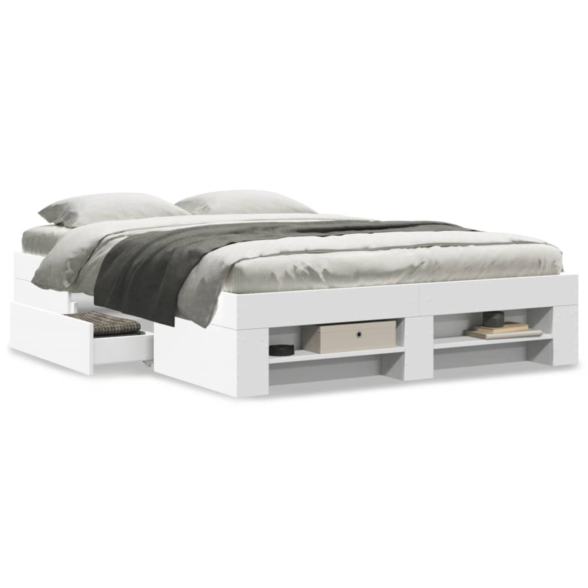 Get a better restful night's sleep from this bed frame! It makes a welcoming addition to any bedroom. Durable material: The bed frame is made of engineered wood. The engineered wood is of exceptional quality with a smooth surface and also features strength, stability, and resistance to moisture.Slatted base for optimal support: The bed frame is equipped with a slatted base for support and breathability for your mattress.Storage function: This bed frame offers drawers and open compartments for keeping your magazines, books, toys and other small items well-organised. Good to know:A mattress is not included with this bed. We do offer a various selection of mattresses. You can check our shop for a matching mattress.