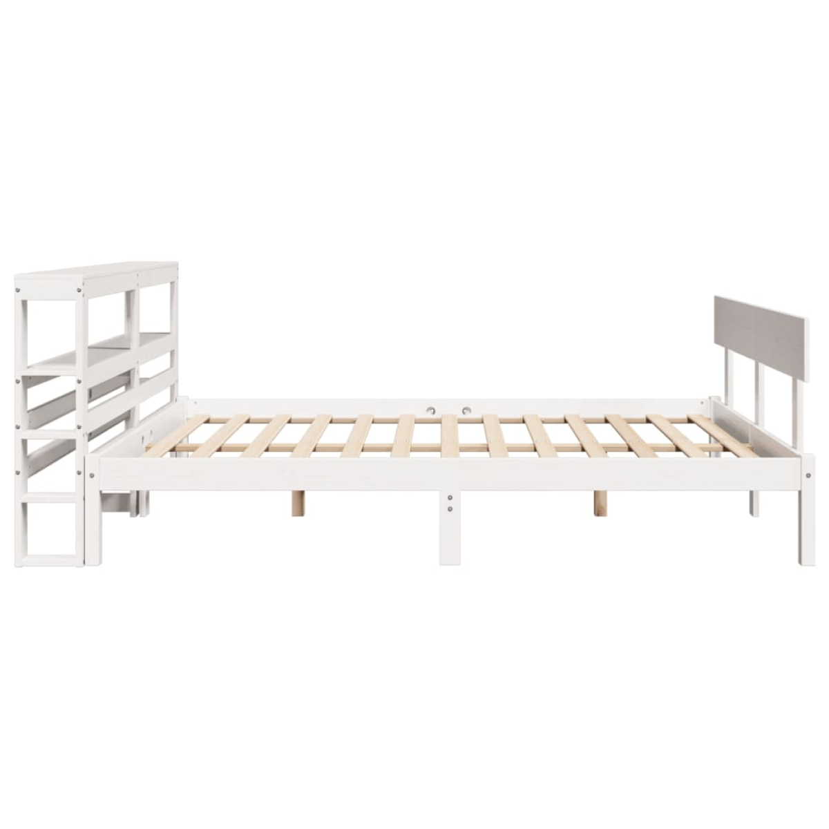 Enjoy a good night's sleep in this wooden bed frame! It makes a practical and decorative addition to your interior. Solid pine wood: Solid pine wood is a beautiful natural material. Pine wood has a straight grain, and the knots give the material its signature, rustic look.Plywood slats: The plywood slats provide good weight distribution, ensuring your mattress with much-needed support and breathability.Ample storage space: This sleek headboard of the bed features two convenient shelves, offering ample storage space to keep all your nighttime essentials within easy reach.Freestanding headboard: The freestanding headboard offers a hassle-free solution for effortless placement and repositioning without the need for wall installation. Good to know: A mattress is not included with this bed. We do offer a various selection of mattresses. You can check our shop for a matching mattress.