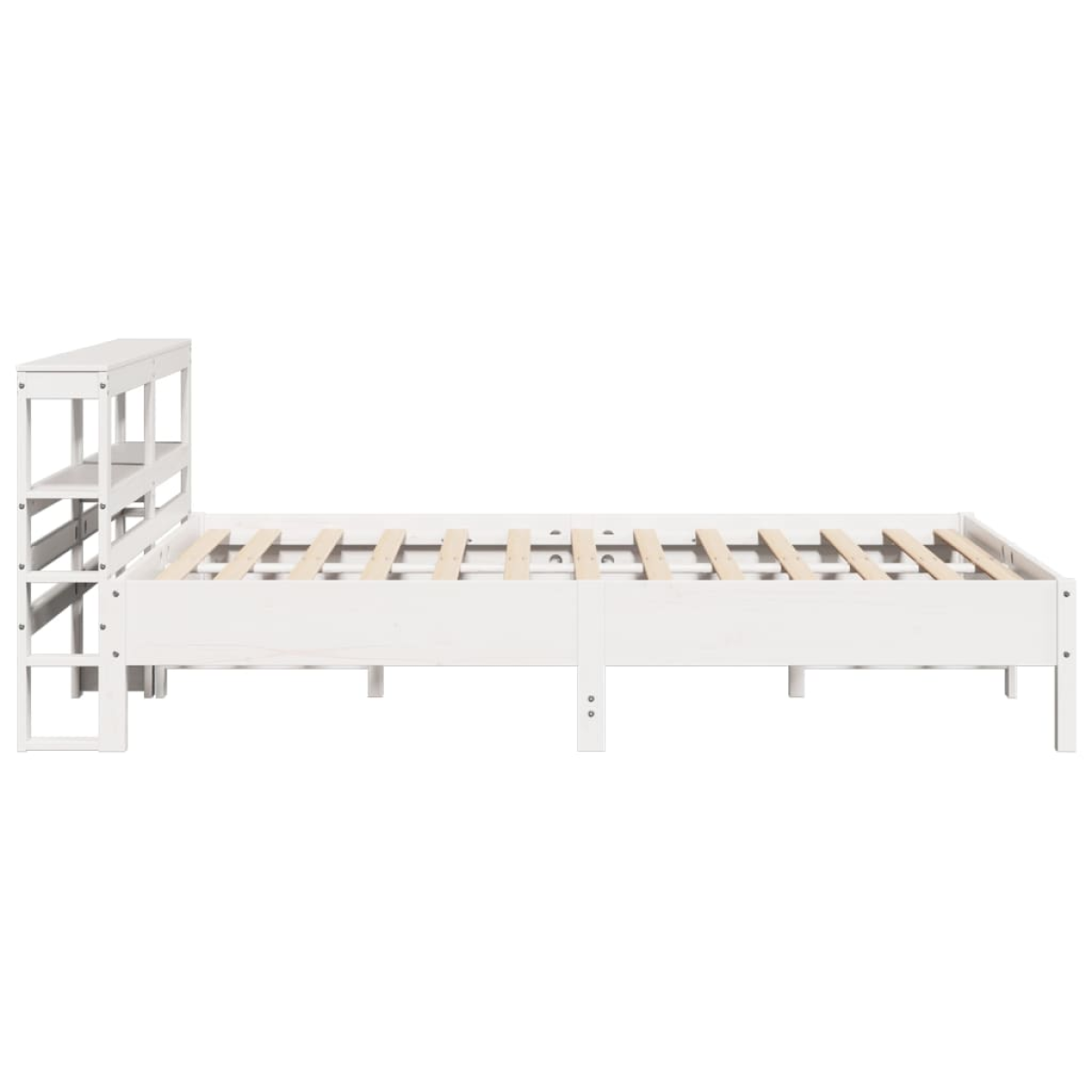 Get a better restful night's sleep from this bed frame! It makes a welcoming addition to any bedroom. Stable and long-lasting frame: Solid pinewood is known for its strength and durability. Its straight grains and distinctive knots contribute to its rustic charm.Slatted base for optimal support: The bed frame is equipped with a slatted base for support and breathability for your mattress.Versatile headboard: This bed frame comes with a headboard that provides excellent back support when you sit up in bed to read or watch TV, while also serving as a decorative element.Ample storage space: This sleek headboard features two convenient shelves, offering ample storage space to keep all your nighttime essentials within easy reach. Good to know:A mattress is not included with this bed. We do offer a various selection of mattresses. You can check our shop for a matching mattress.