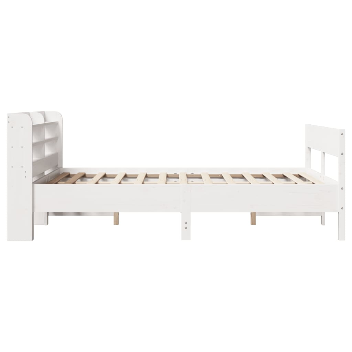 Get a better restful night's sleep from this bed frame! It makes a welcoming addition to any bedroom. Stable and long-lasting frame: Solid pinewood is known for its strength and durability. Its straight grains and distinctive knots contribute to its rustic charm.Slatted base for optimal support: The bed frame is equipped with a slatted base for support and breathability for your mattress.Versatile headboard: This bed frame comes with a headboard that provides excellent back support when you sit up in bed to read or watch TV, while also serving as a decorative element.Ample storage space: This sleek headboard features three convenient shelves, offering ample storage space to keep all your nighttime essentials within easy reach. Good to know:A mattress is not included with this bed. We do offer a various selection of mattresses. You can check our shop for a matching mattress.