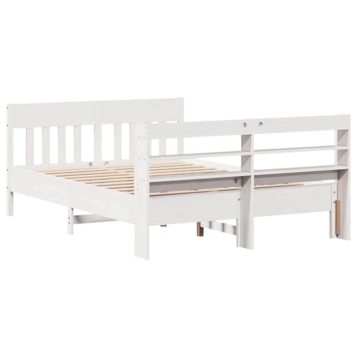 Get a better restful night's sleep from this bed frame! It makes a welcoming addition to any bedroom. Stable and long-lasting frame: Solid pinewood is known for its strength and durability. Its straight grains and distinctive knots contribute to its rustic charm.Slatted base for optimal support: The bed frame is equipped with a slatted base for support and breathability for your mattress.Versatile headboard: This bed frame comes with a headboard that provides excellent back support when you sit up in bed to read or watch TV, while also serving as a decorative element.Ample storage space: This sleek headboard features three convenient shelves, offering ample storage space to keep all your nighttime essentials within easy reach. Good to know:A mattress is not included with this bed. We do offer a various selection of mattresses. You can check our shop for a matching mattress.
