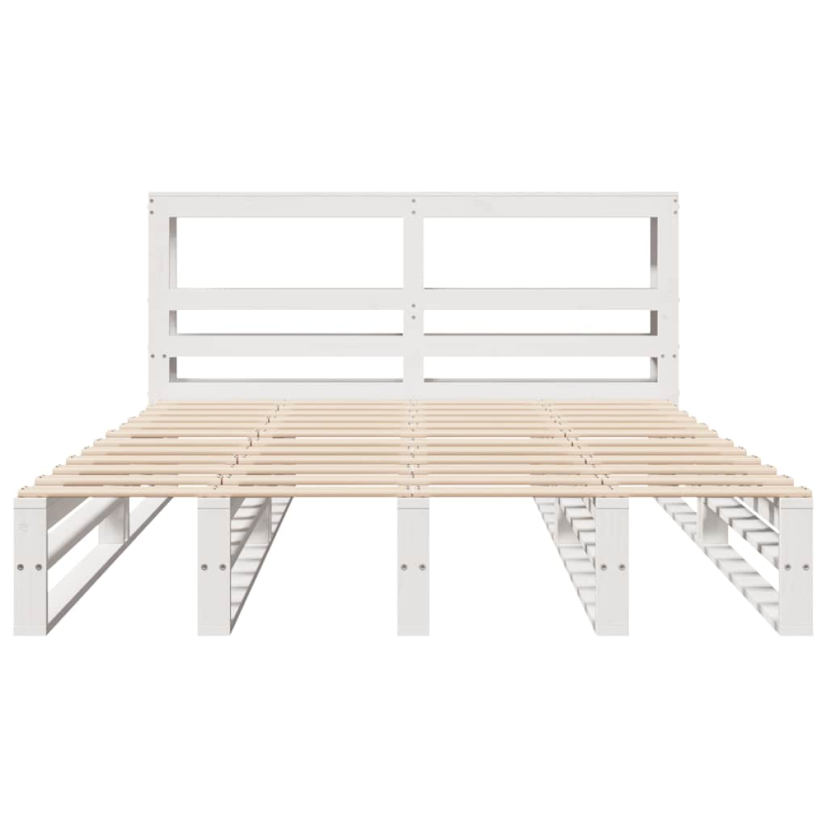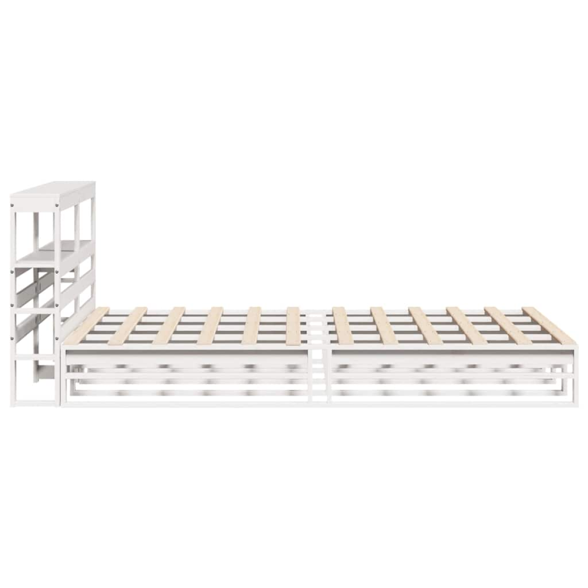 Enjoy a good night's sleep in this wooden bed frame! It makes a practical and decorative addition to your interior. Stable and long-lasting frame: Solid pinewood is known for its strength and durability. Its straight grains and distinctive knots contribute to its rustic charm.Ample storage space: This sleek headboard features convenient shelves, offering ample storage space to keep all your nighttime essentials within easy reach.Versatile headboard: This double bed frame comes with a headboard that provides excellent back support when you sit up in bed to read or watch TV, while also serving as a decorative element.Slatted base for optimal support: The bed base is equipped with a slatted base for support and breathability for your mattress. Good to know:A mattress is not included with this bed. We do offer a various selection of mattresses. You can check our shop for a matching mattress.