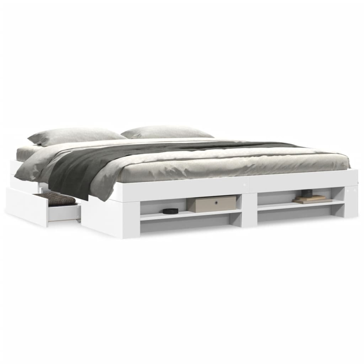 Get a better restful night's sleep from this bed frame! It makes a welcoming addition to any bedroom. Durable material: The bed frame is made of engineered wood. The engineered wood is of exceptional quality with a smooth surface and also features strength, stability, and resistance to moisture.Slatted base for optimal support: The bed frame is equipped with a slatted base for support and breathability for your mattress.Storage function: This bed frame offers drawers and open compartments for keeping your magazines, books, toys and other small items well-organised. Good to know:A mattress is not included with this bed. We do offer a various selection of mattresses. You can check our shop for a matching mattress.