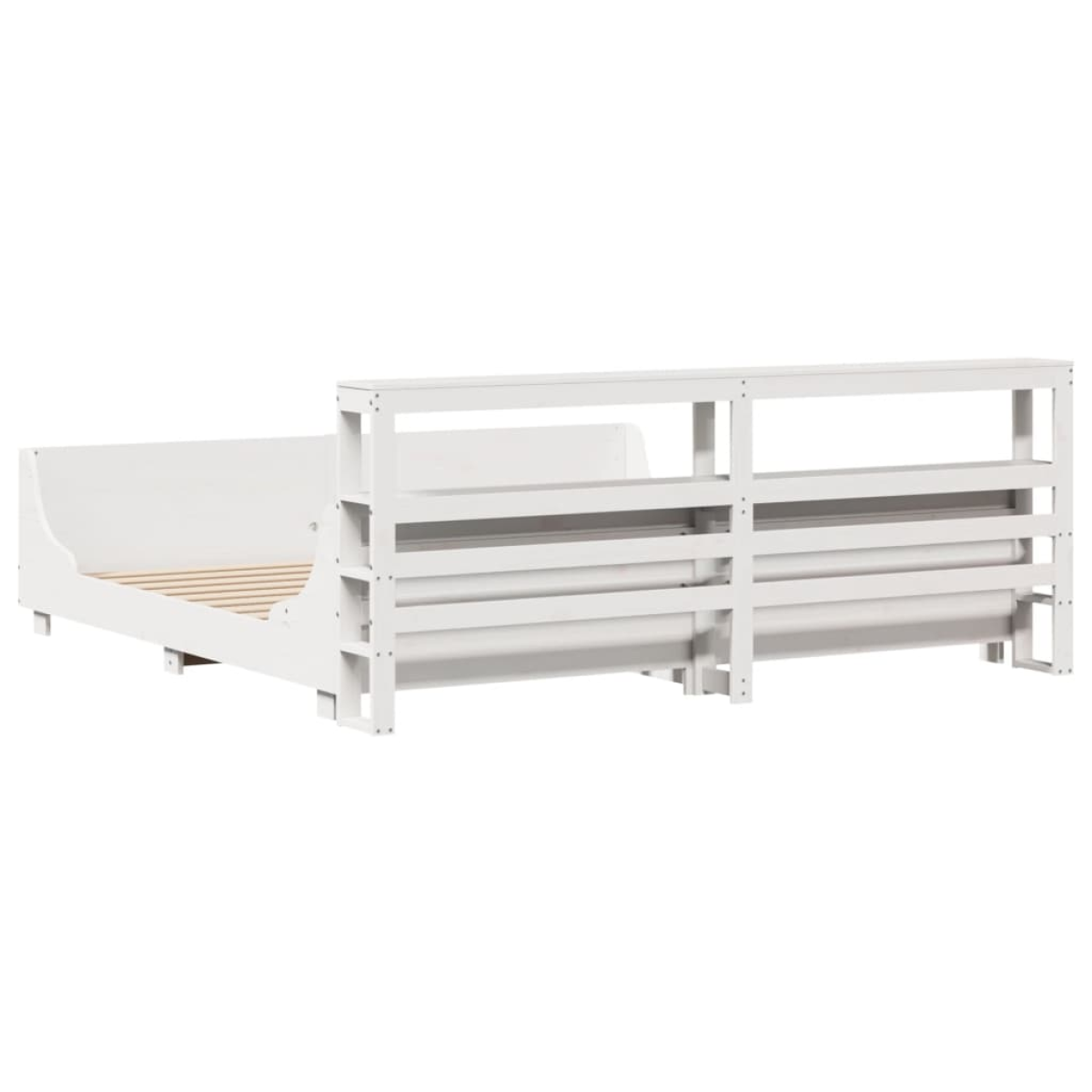 Get a better restful night's sleep from this bed frame! It makes a welcoming addition to any bedroom. Stable and long-lasting frame: Solid pinewood is known for its strength and durability. Its straight grains and distinctive knots contribute to its rustic charm.Slatted base for optimal support: The bed frame is equipped with a slatted base for support and breathability for your mattress.Ample storage space: This sleek headboard of the bed features two convenient shelves, offering ample storage space to keep all your nighttime essentials within easy reach.Freestanding headboard: The freestanding headboard offers a hassle-free solution for effortless placement and repositioning without the need for wall installation. Good to know:A mattress is not included with this bed. We do offer a various selection of mattresses. You can check our shop for a matching mattress.